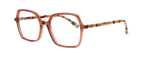 Two bold acetate shapes provide this season with a createur-style. The feminine hexagonal cat-eye and the more square feminine frame are made of acetate. The subtle and sleek front is paired with demi-colored temples for a courageous expression.