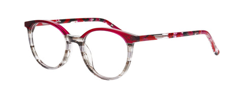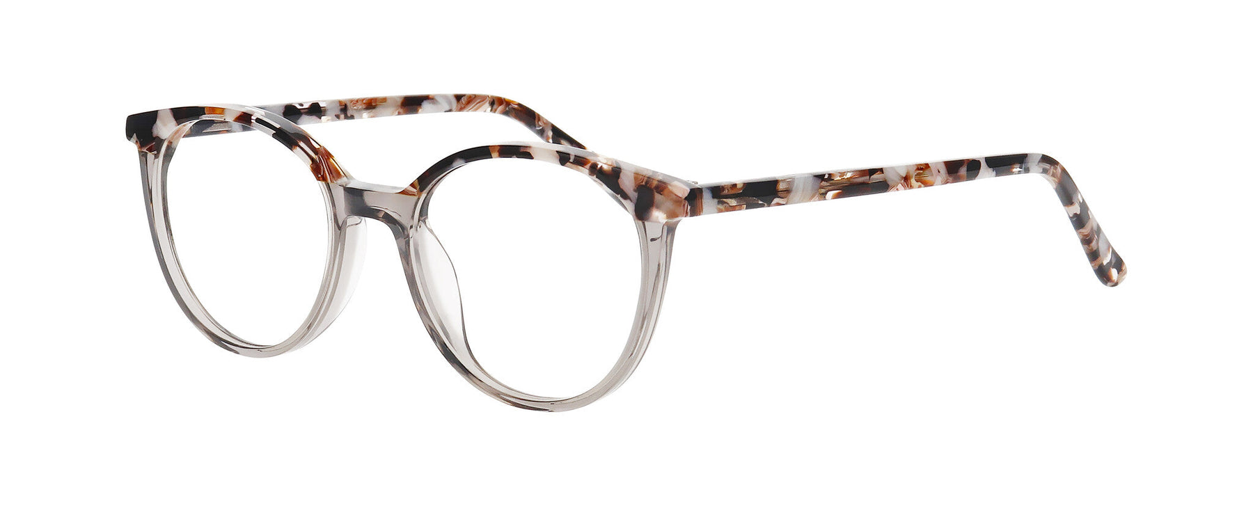 A panto shape and a cat-eye shape is forming this concept. The classic frame comes with a split front dividing the eyebrow and the bottom and mixing transparency, demi, and textured acetate in colourful combinations.
