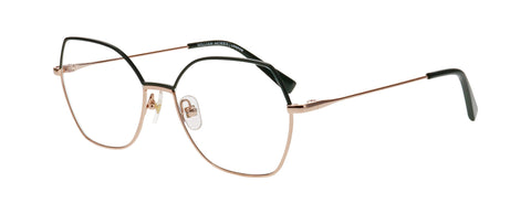Thin, delicate and elegant, this angular geometric frame plays with shape, material and colour all at once. Polished metal temples combine with rich, high gloss acetate front colours in a style that is set to be a favourite for the season ahead.