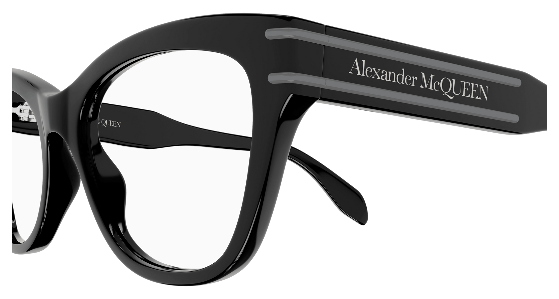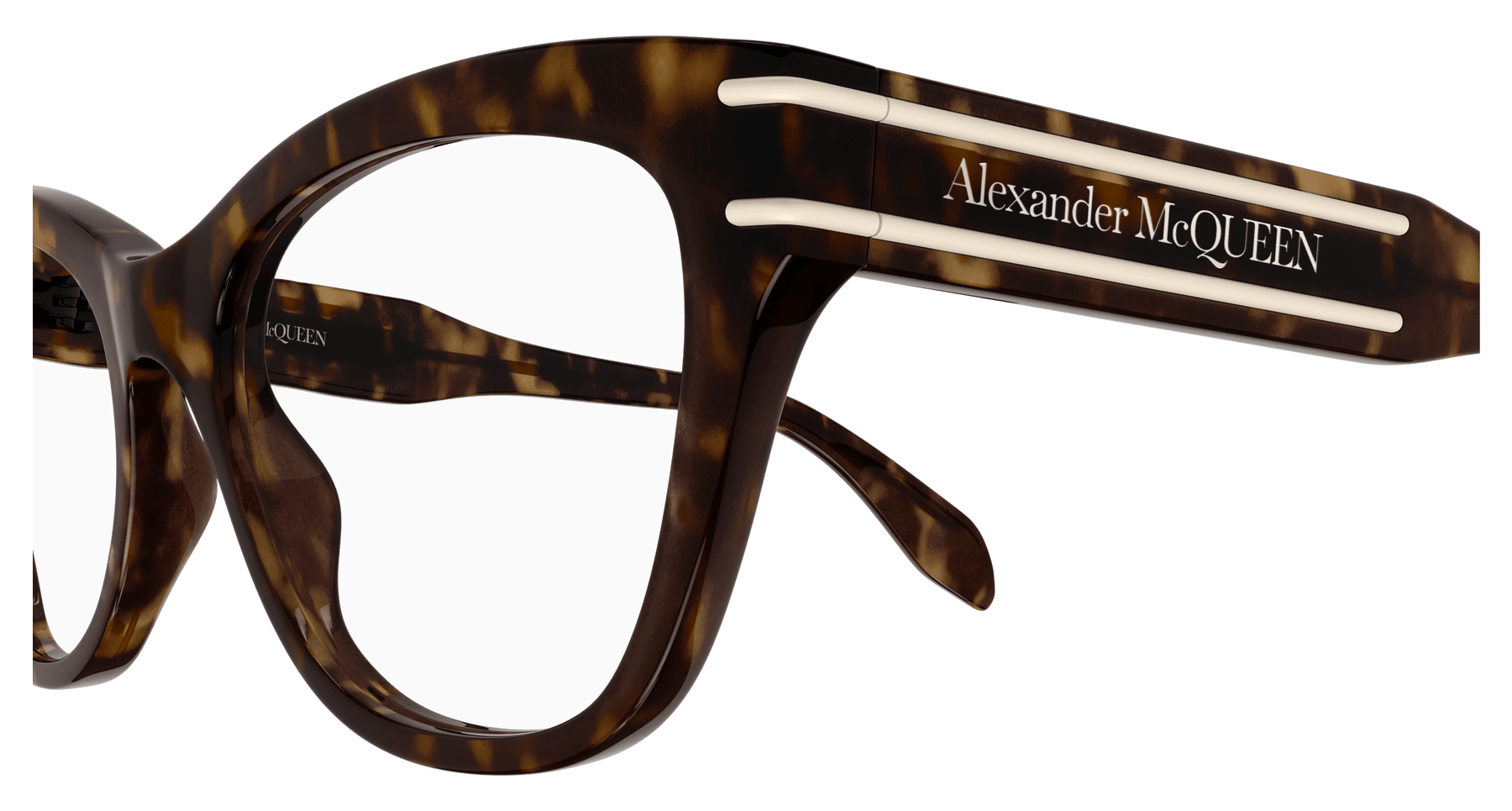 Selvedge Lines family, highly recognizable and distinctive, is inspired by jeans' "cimosa" also called selvedge, that has given rise to Signature accessories line launched by McQueen in FW23. Feminine soft cat eye shape in full acetate with metal lines detal that runs from the corner angle to the temple. The Alexander McQueen logo is lasered on the temples and framed between the metal lines. The color palette includes shiny classic shades. The metal lines on the temples are colored in contrast with the acetate construction.