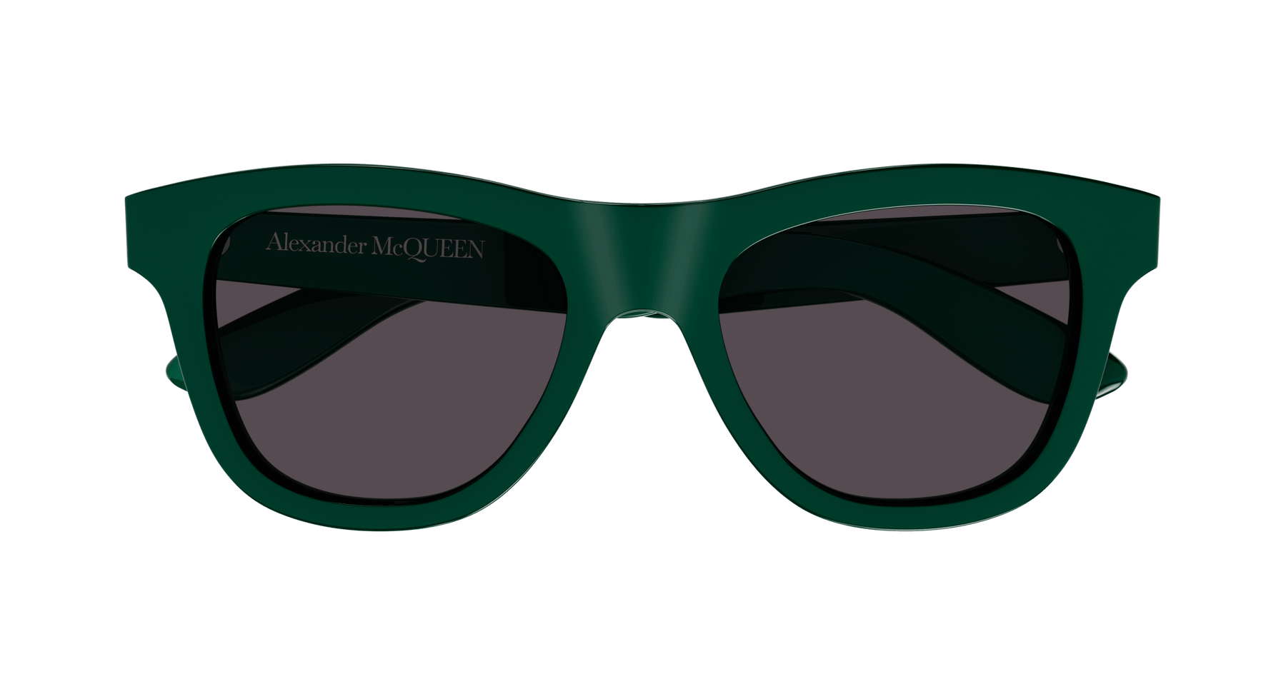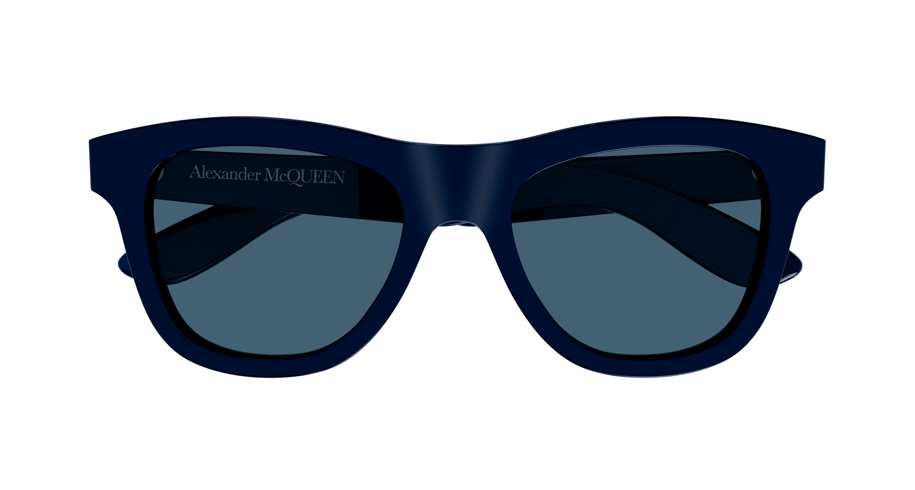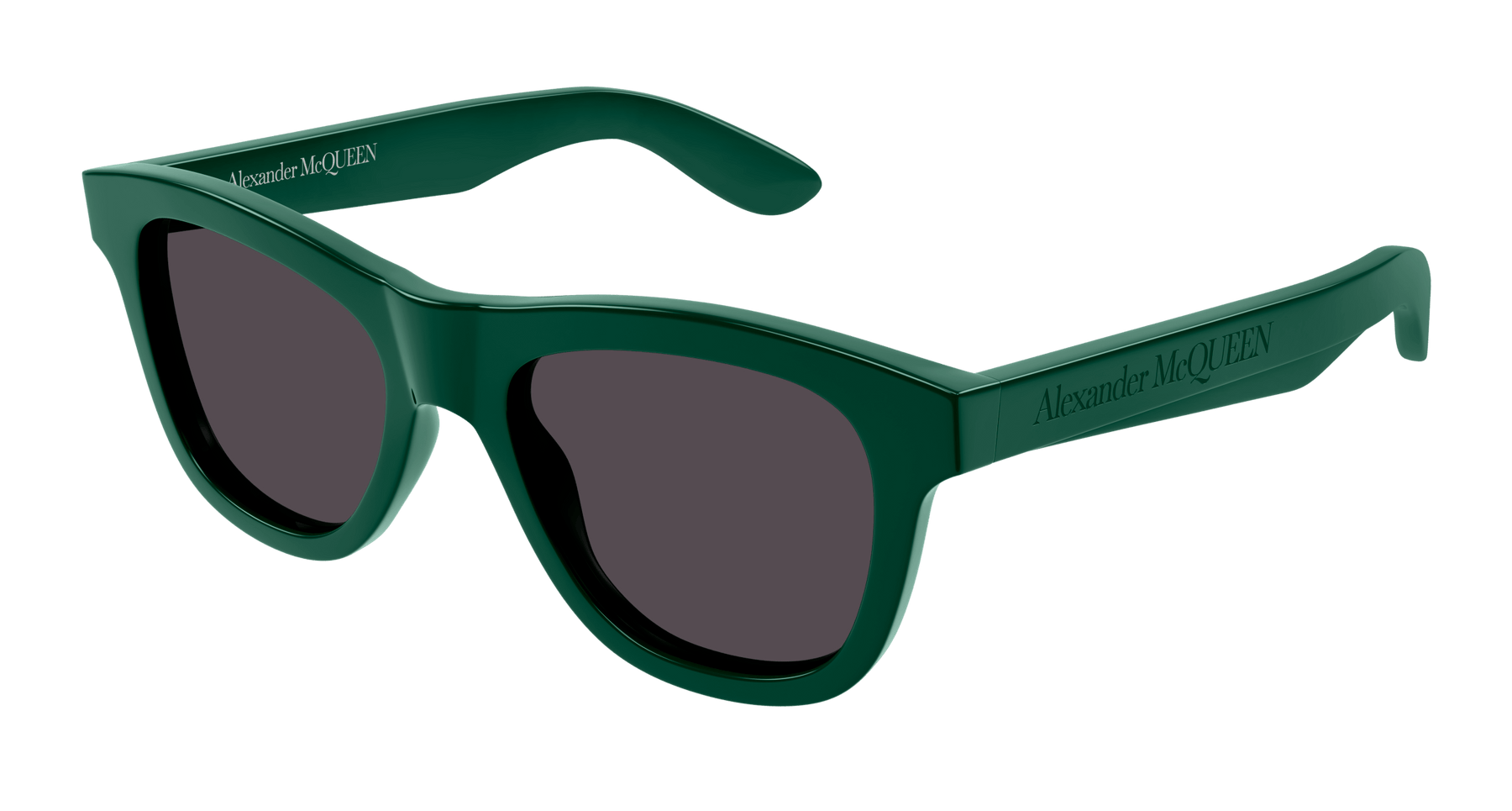 Taking the 50's look like inspiration, this family has been designed with McQueen's rock soul in mind: bold vintage shapes are matched with an undersized look. Masculine vintage inspired shape in full acetate. The Alexander McQueen logo is lasered on the temples tone-on-tone with the frame. McQueen Angled palette is integral to the House latest launches. It includes shiny classic tones, green and blue.