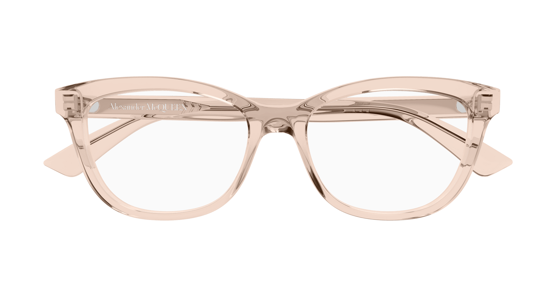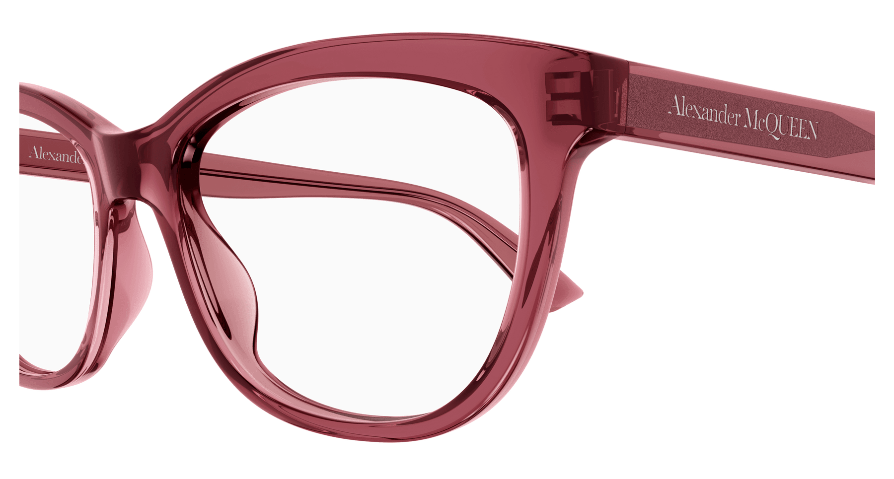 The Signature Essential recalls the pure and classic Alexander McQueen soul through a light and easy to wear family. Feminine soft cat eye shape in lightweight full acetate. Lasered lettering logo, enameled in silver. The color palette includes commercial shades and more trendy ones in transparent shades such as pink/peach, burgundy and violet/lilac.