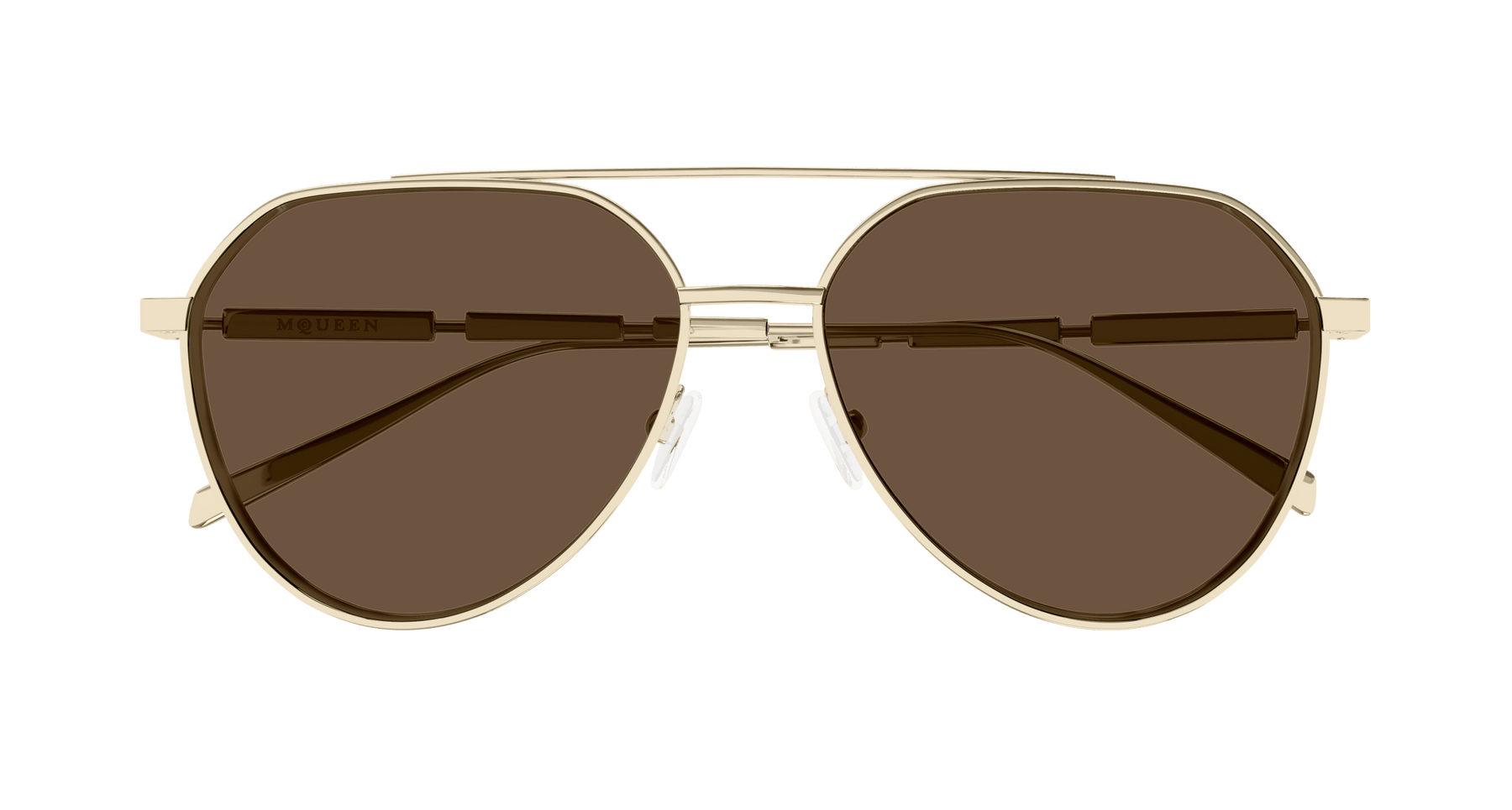 New full metal story entirely dedicated to man. A classic pilot style featuring a double bridge nose. Outstanding temples embellished with 3 metal plaques. The new McQueen logo is lasered on the first metal plaque.