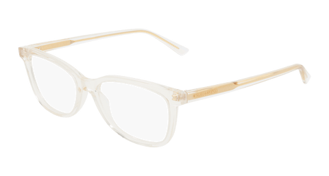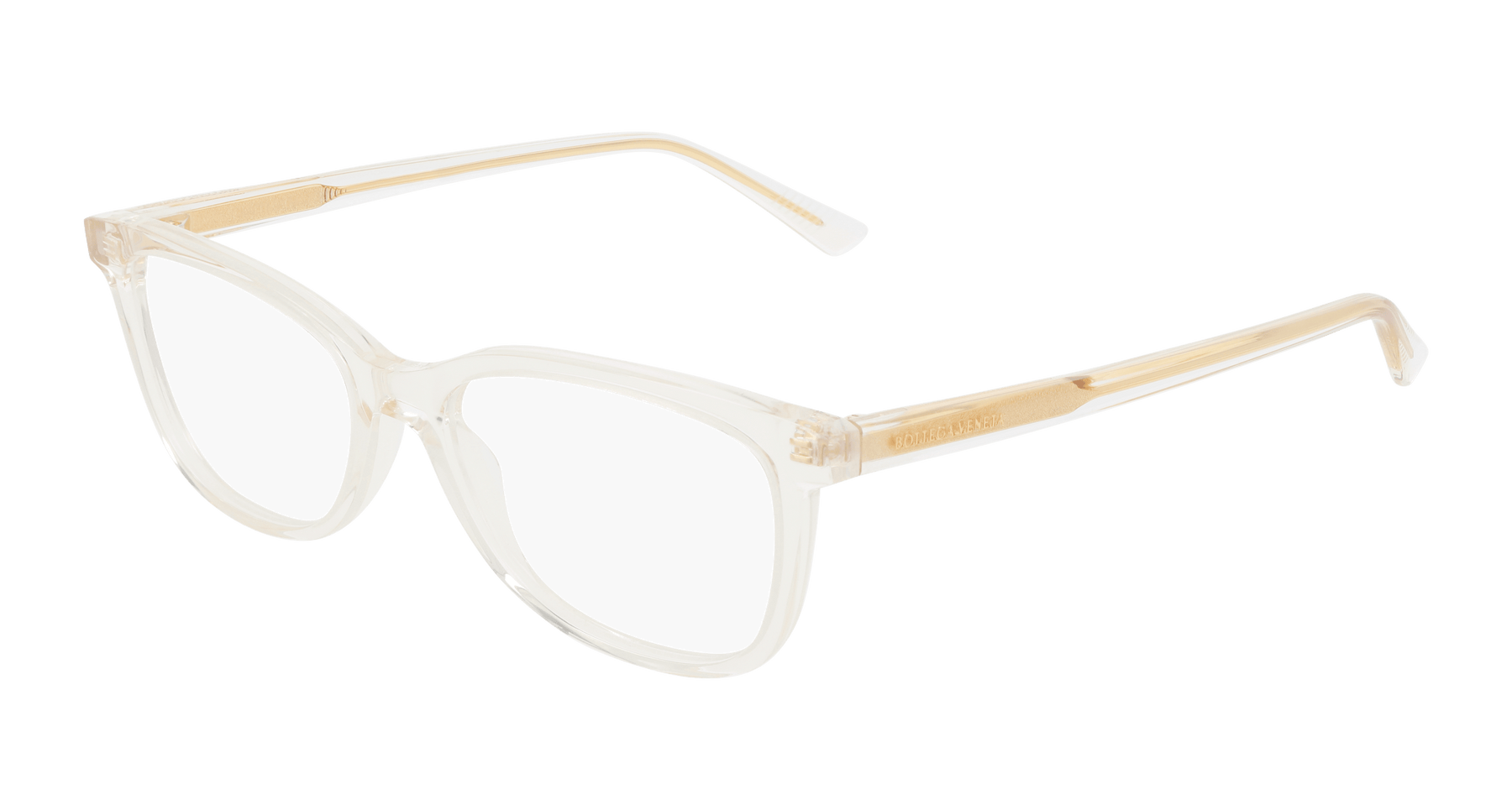 Feminine soft butterfly full acetate shape for a commercial entry price style. Thin and light construction to increase comfort and wearability, though recalling the new distinctive sharpness on tiny details and faceting. Bottega Veneta logo photo engraved in gold under laque on the external part of the temples. Color palette characterized by a mix of solid and transparent acetates.