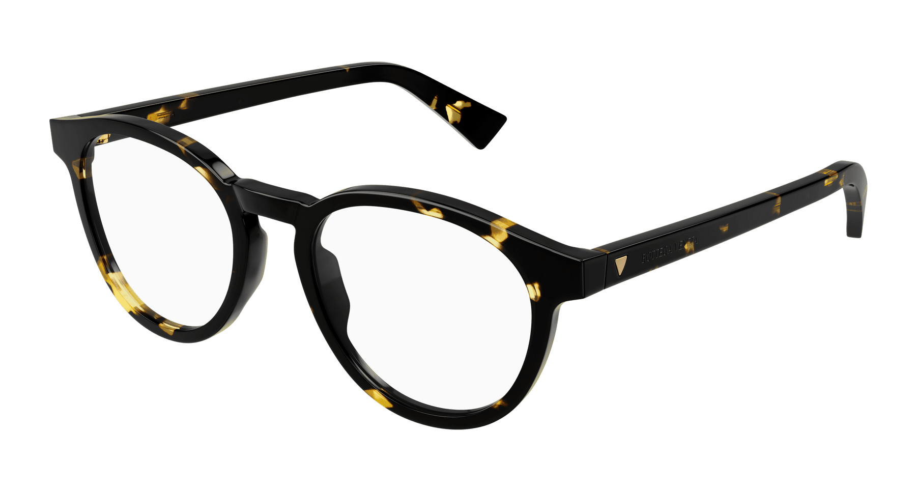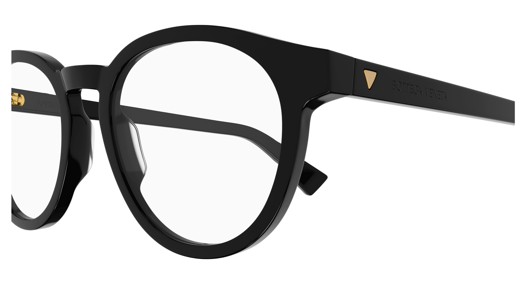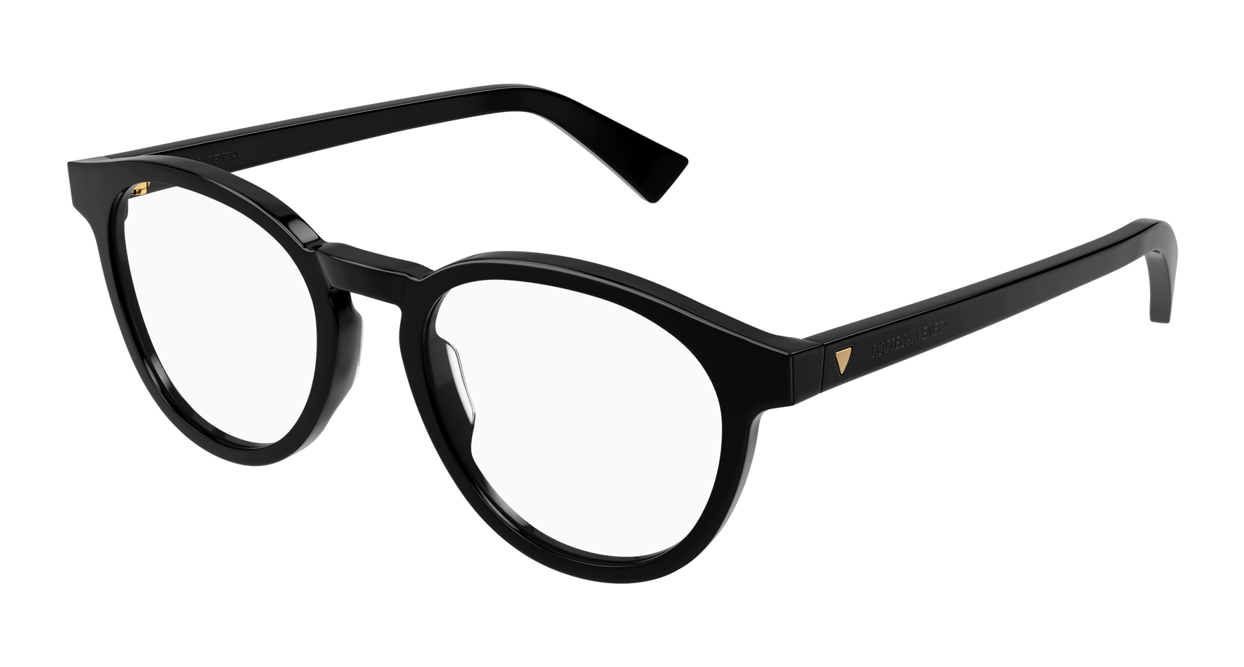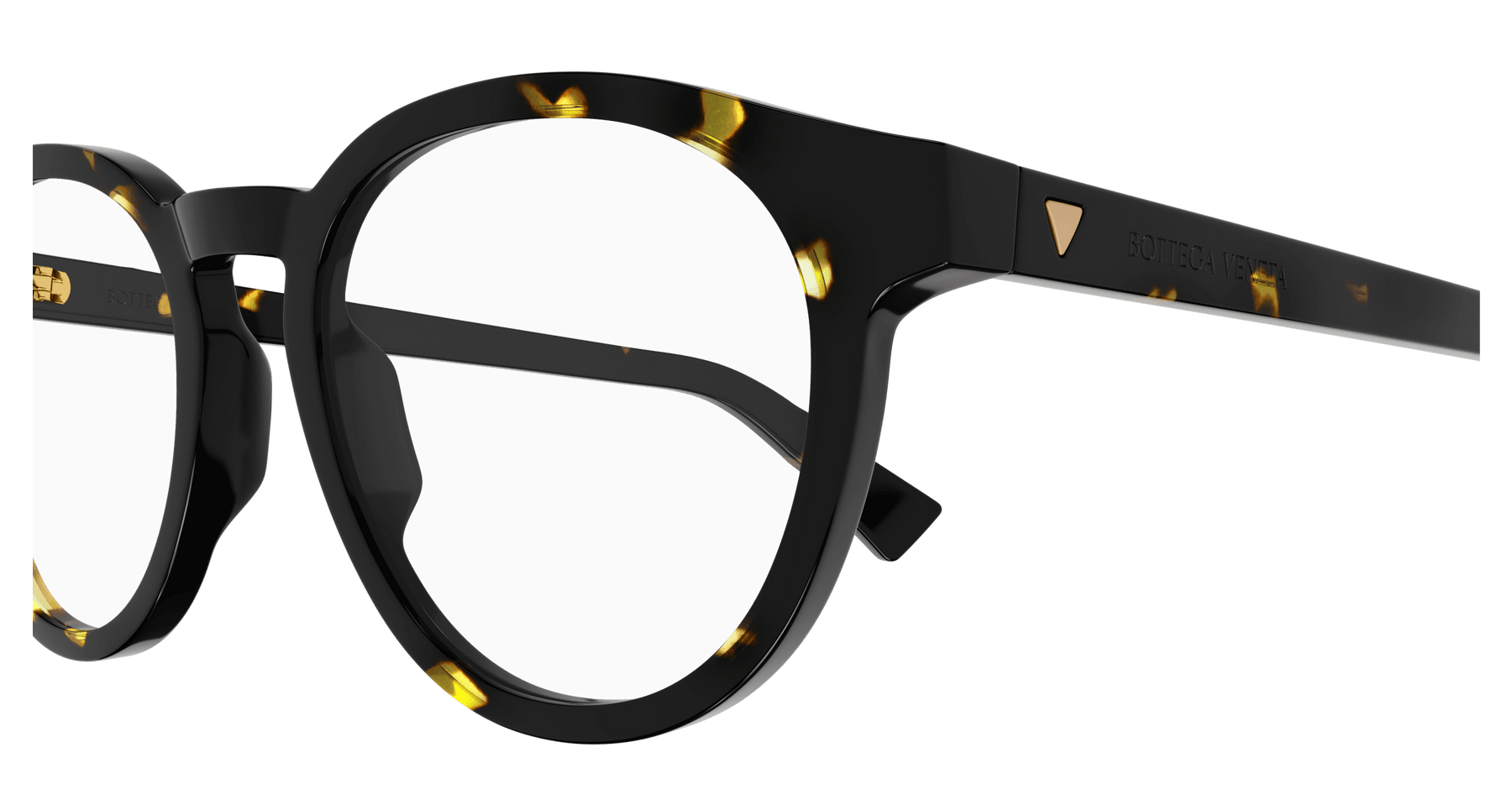 Full acetate and light unisex pantos style. Triangular metal stud on temple. Bottega Veneta logo on temple.