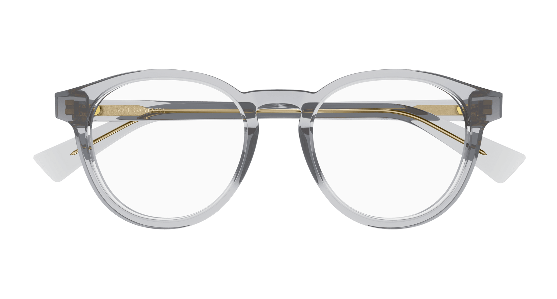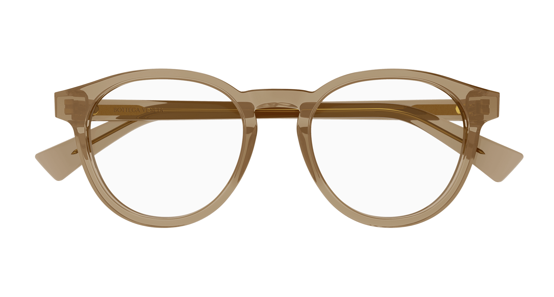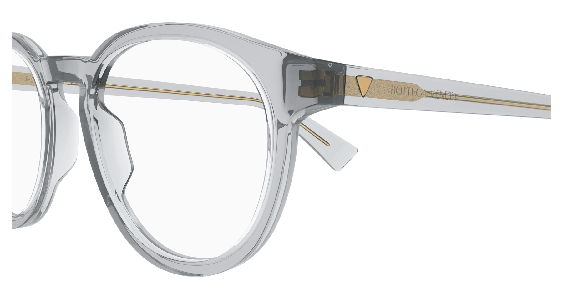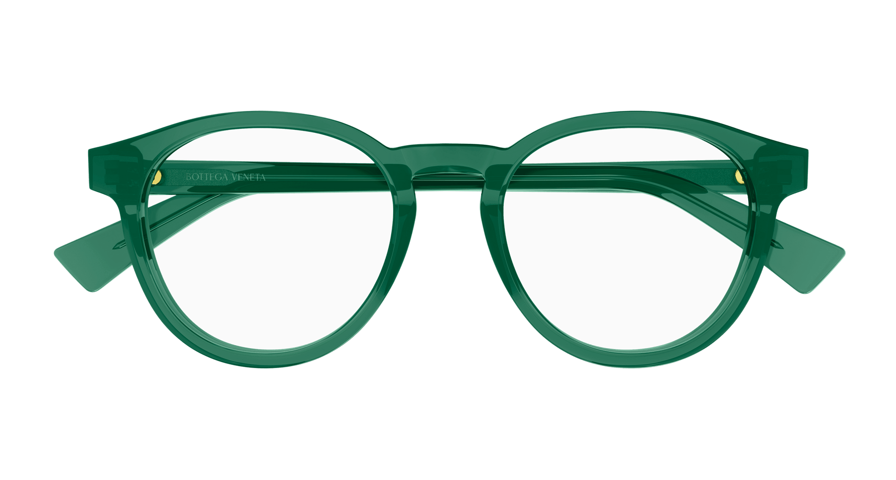 Full acetate and light unisex pantos style. Triangular metal stud on temple. Bottega Veneta logo on temple.