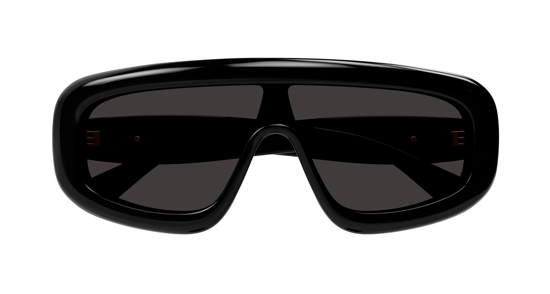 Full acetate unisex mask. Acetate featuring rounded volumes both on front ant temples. Iconic metal fringed ribbon declined in a new rounded and organic way.