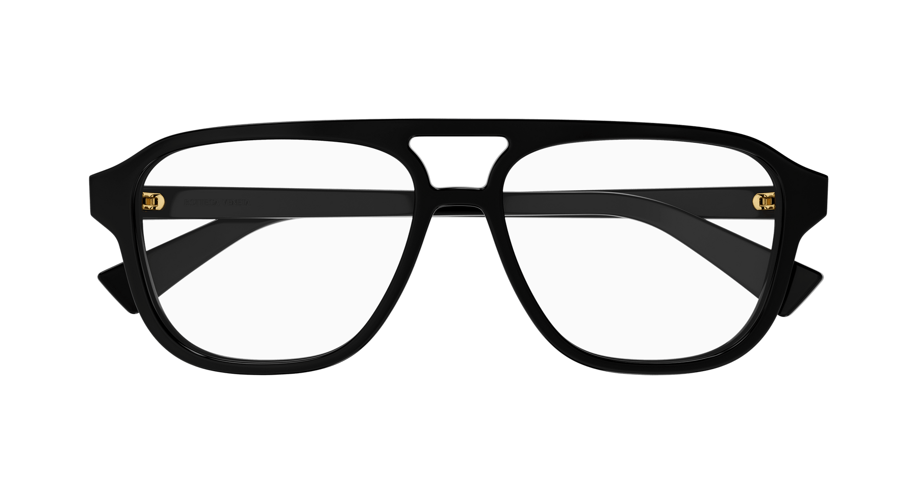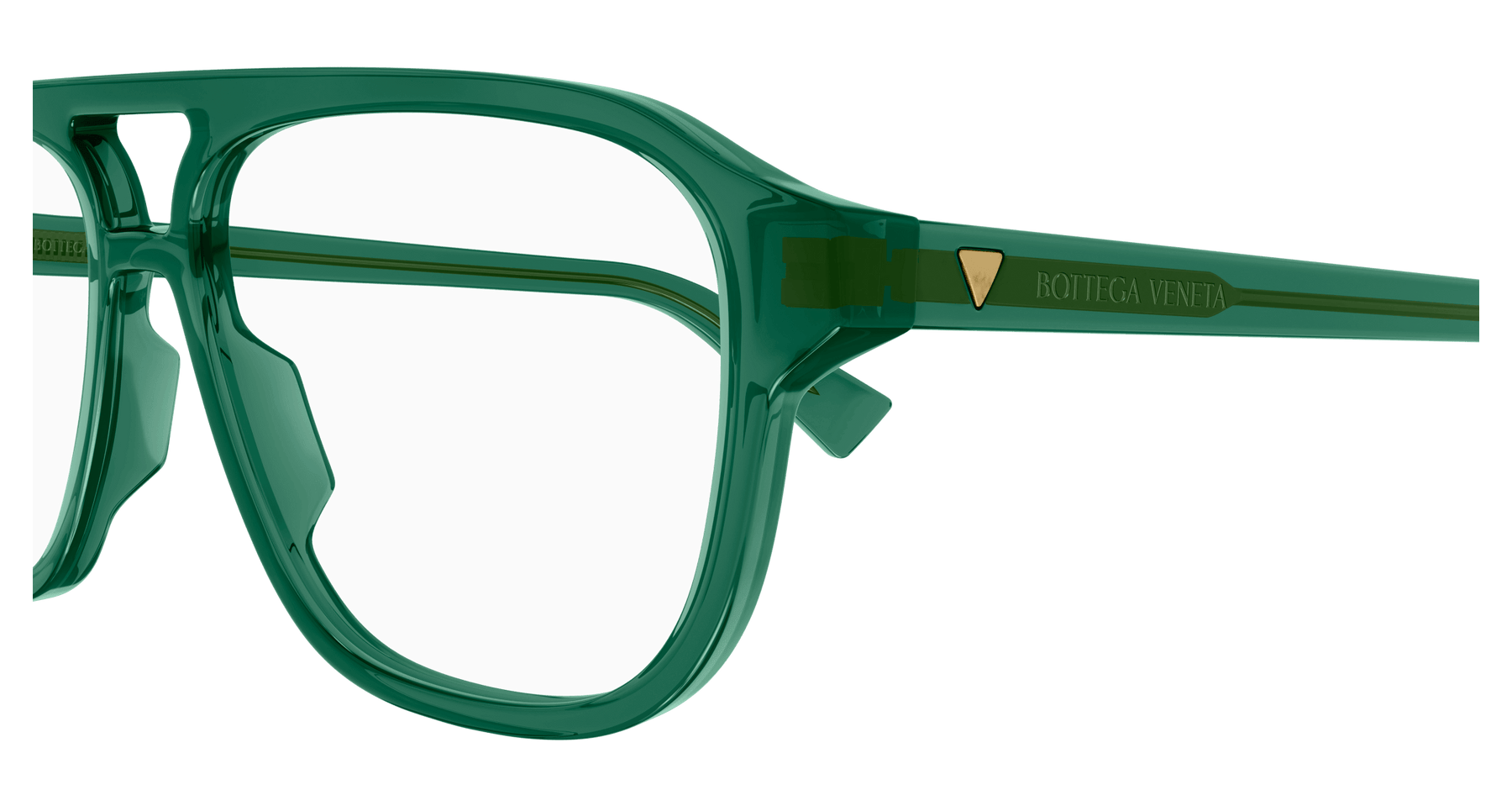 Full acetate and light masculine double bridge style. Triangular metal stud on temple. Bottega Veneta logo on temple.