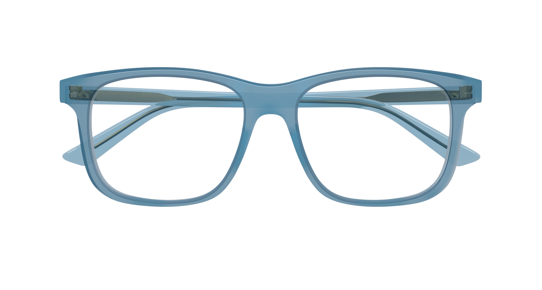 Masculine rectangular shape. Thin acetate volumes and low temples. The temples are embellished with a sophisticated metal sticker logo.