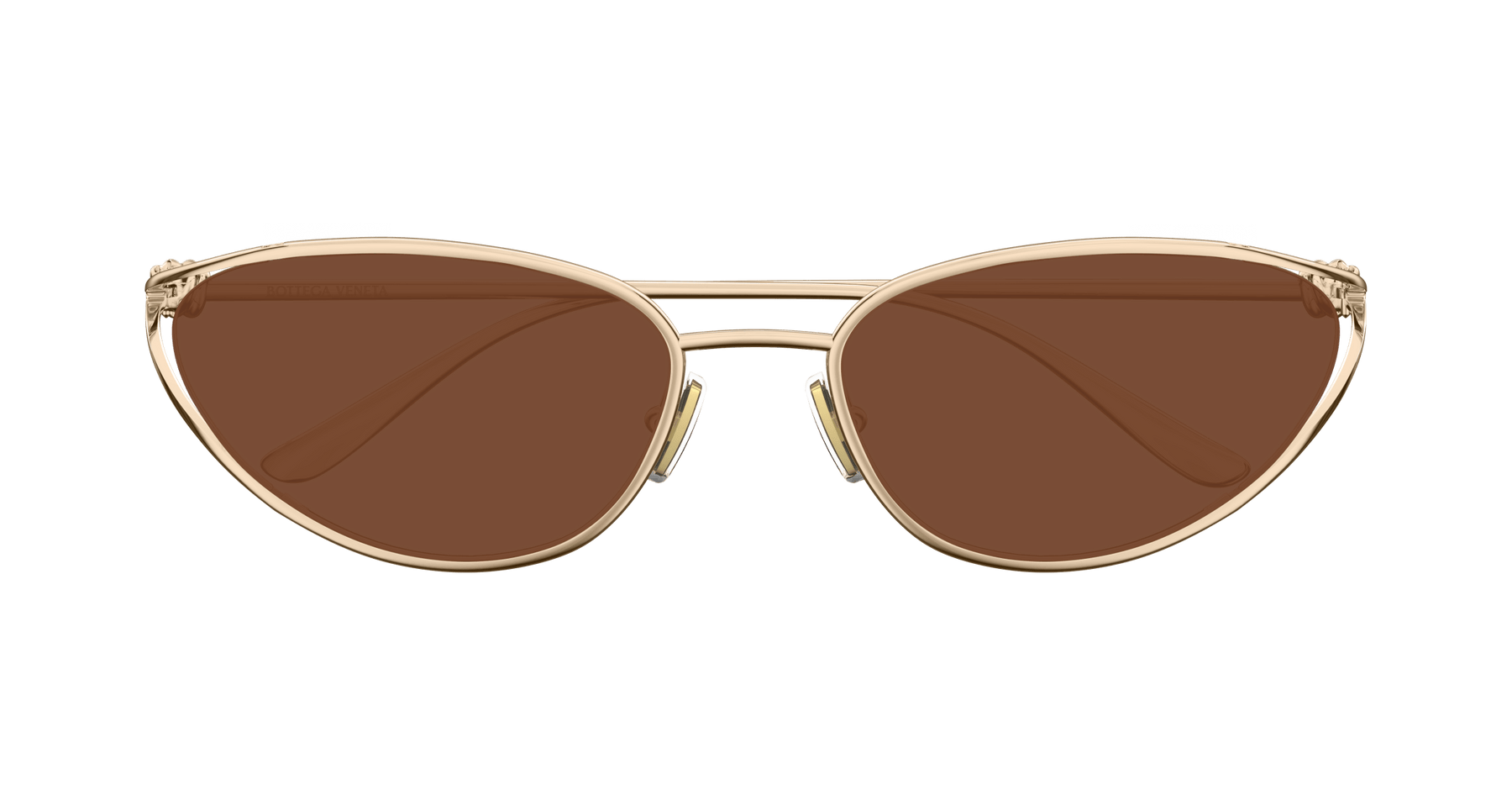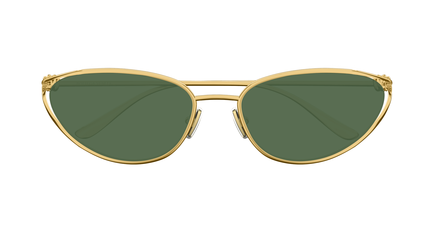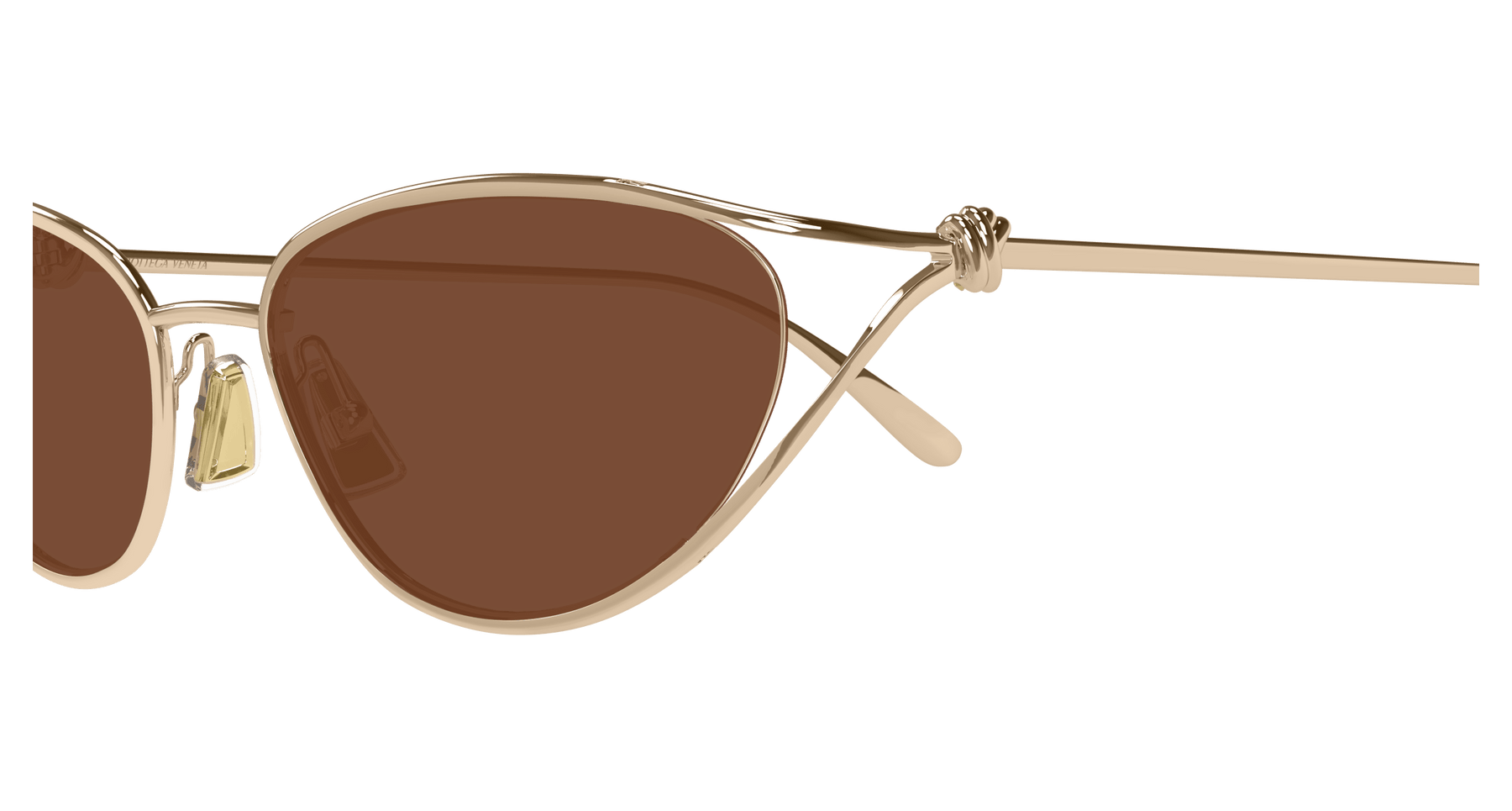 Soft cat eye shape from the Knot family. This style uses the iconic bottega veneta double knot to create a beautifully crafted fork construction frame. The full metal temple has a crease in the middle to simulate the two stripes coming from the knot and the tip is lasered with the Bottega Veneta logo.