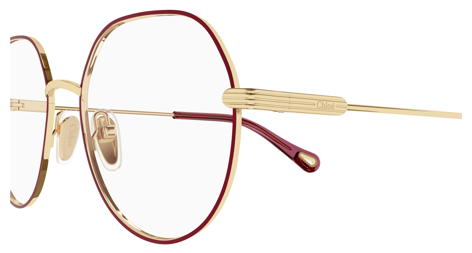 Round geometrical light metal style. Subtle lines godron details on the end tip, temple and nose bridge. Bio Acetate temple tip with iconic teardrop cut out.