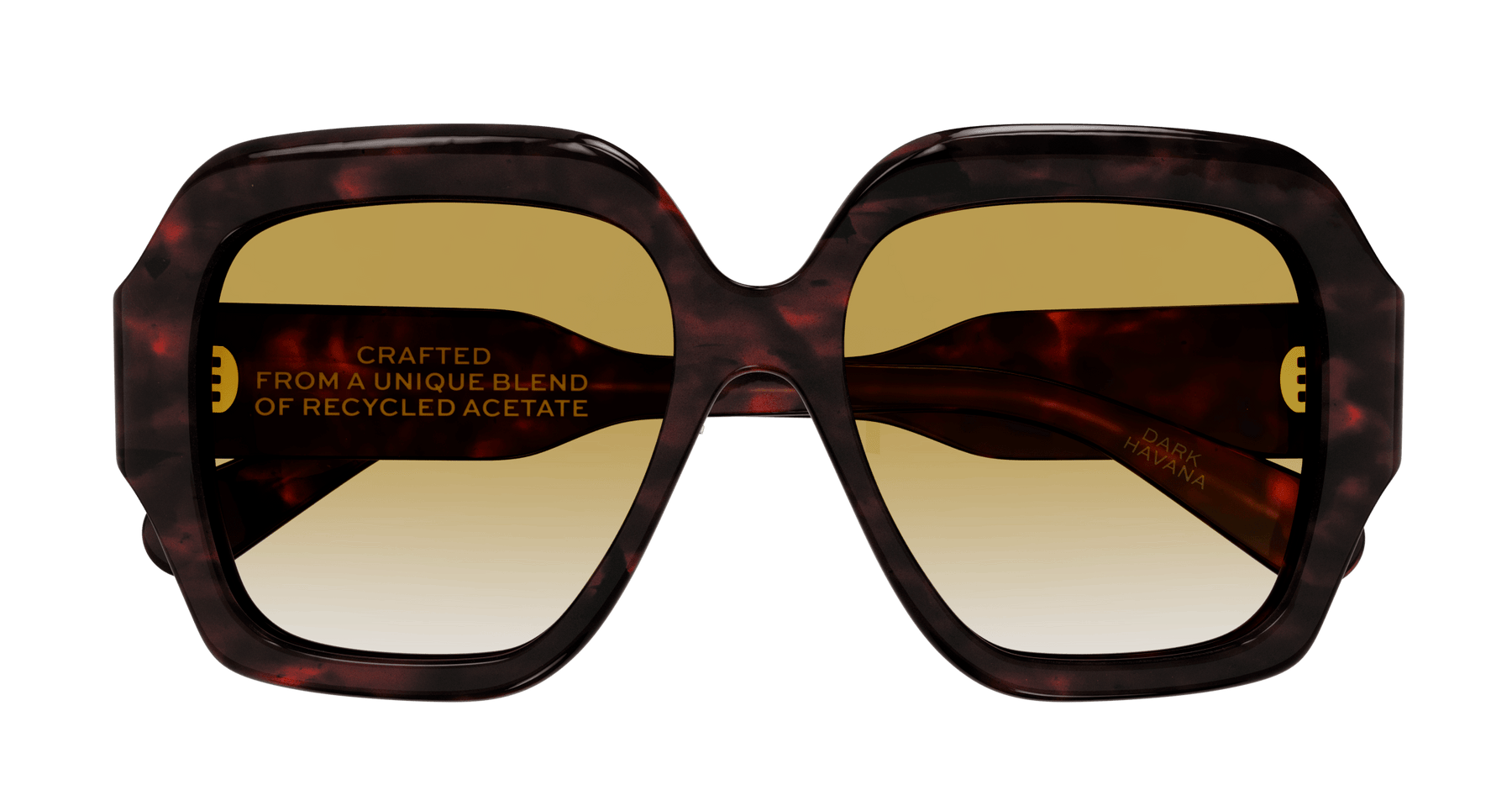 Vintage oversized squared frame made in 100% recycled acetate. The recycled unique colors are enhanced by a pure acetate and thick construction, paired with gradient and solid bio nylon lenses. Gayia's Manifesto is printed with Gold enamel inside the temple for an impactful storytelling, and color name. For limited edition colors, each piece is uniquely numbered on the temple tip.