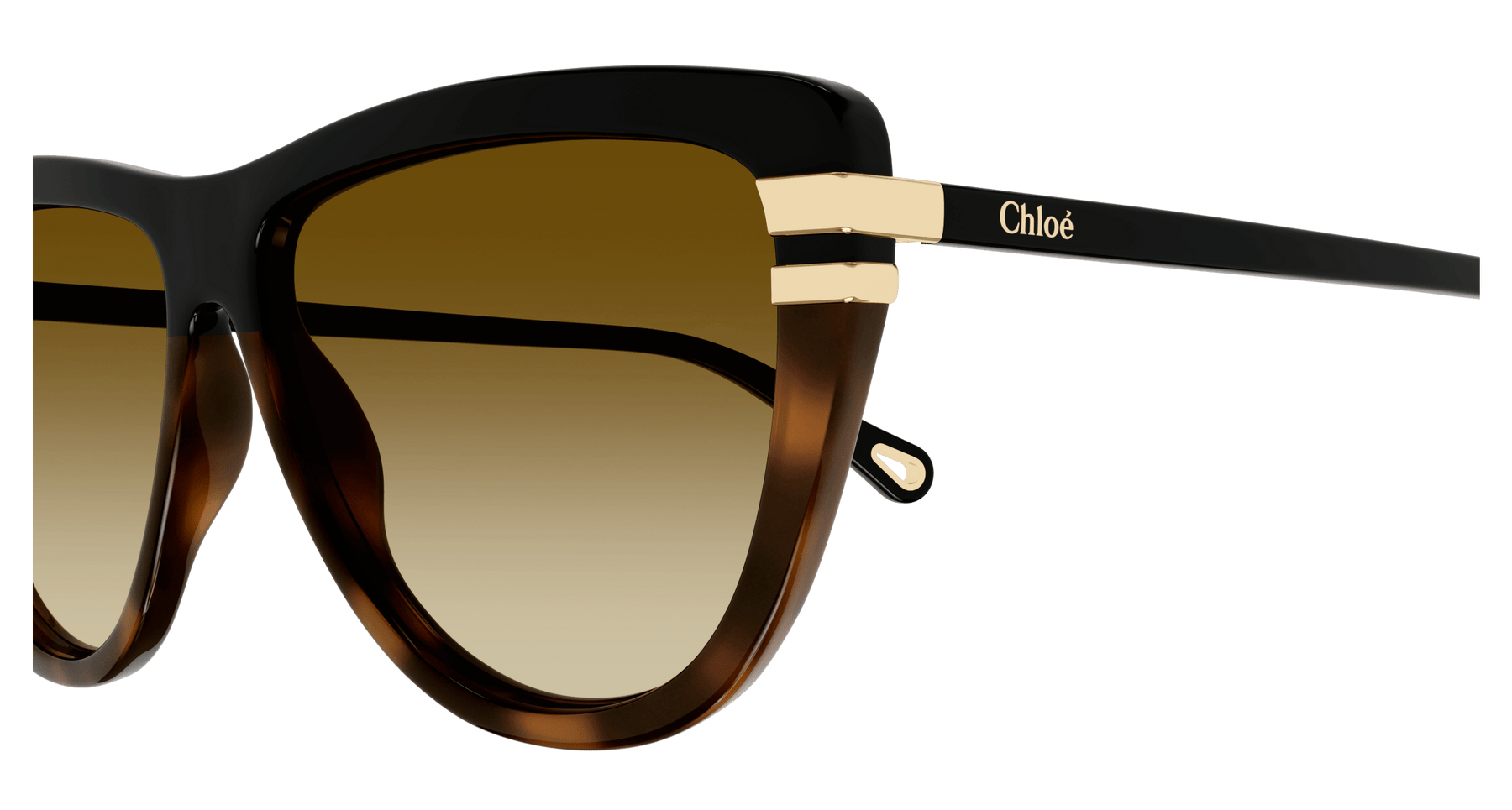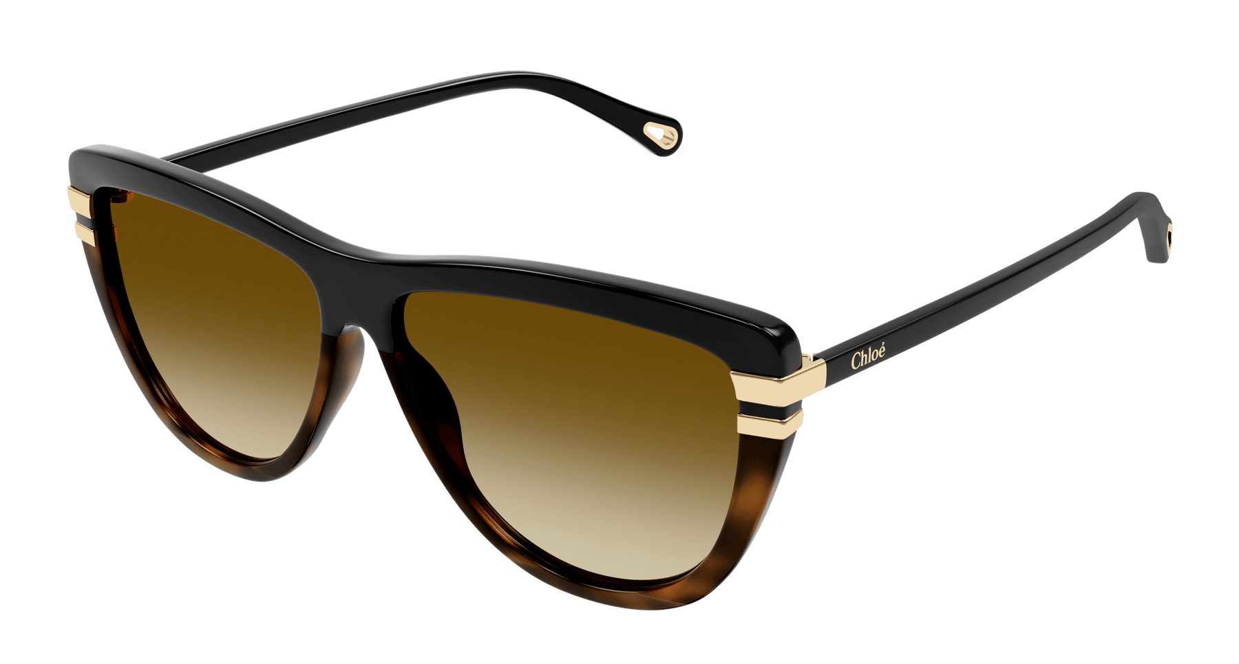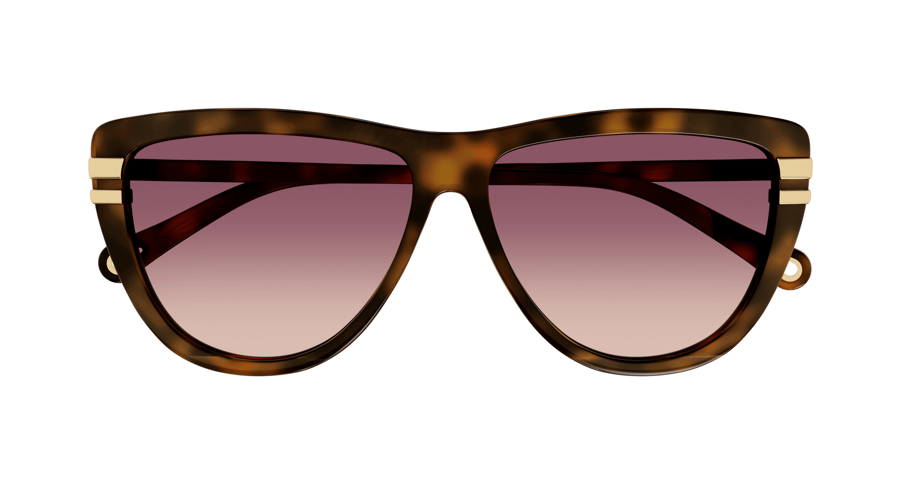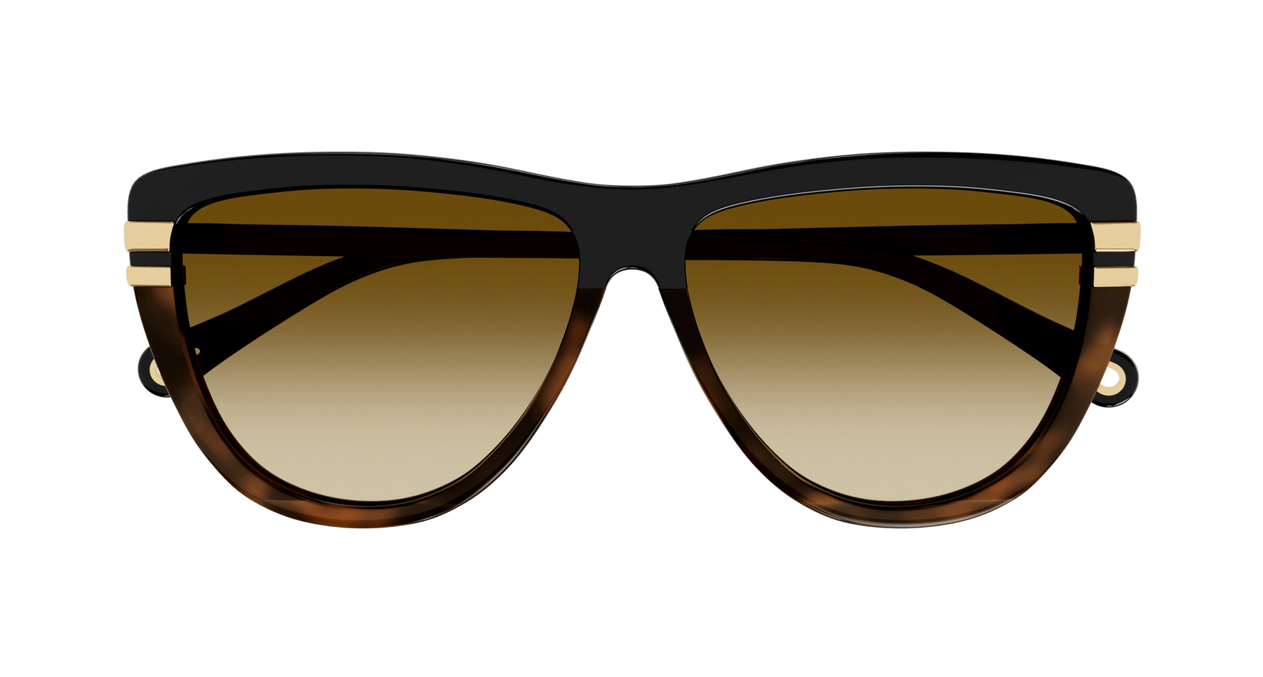 Soft Cat Eye sun shape in thin Acetate ReNew construction. Concept inspired by Havana shades and color-block. Gold rounded metal interts on the front.