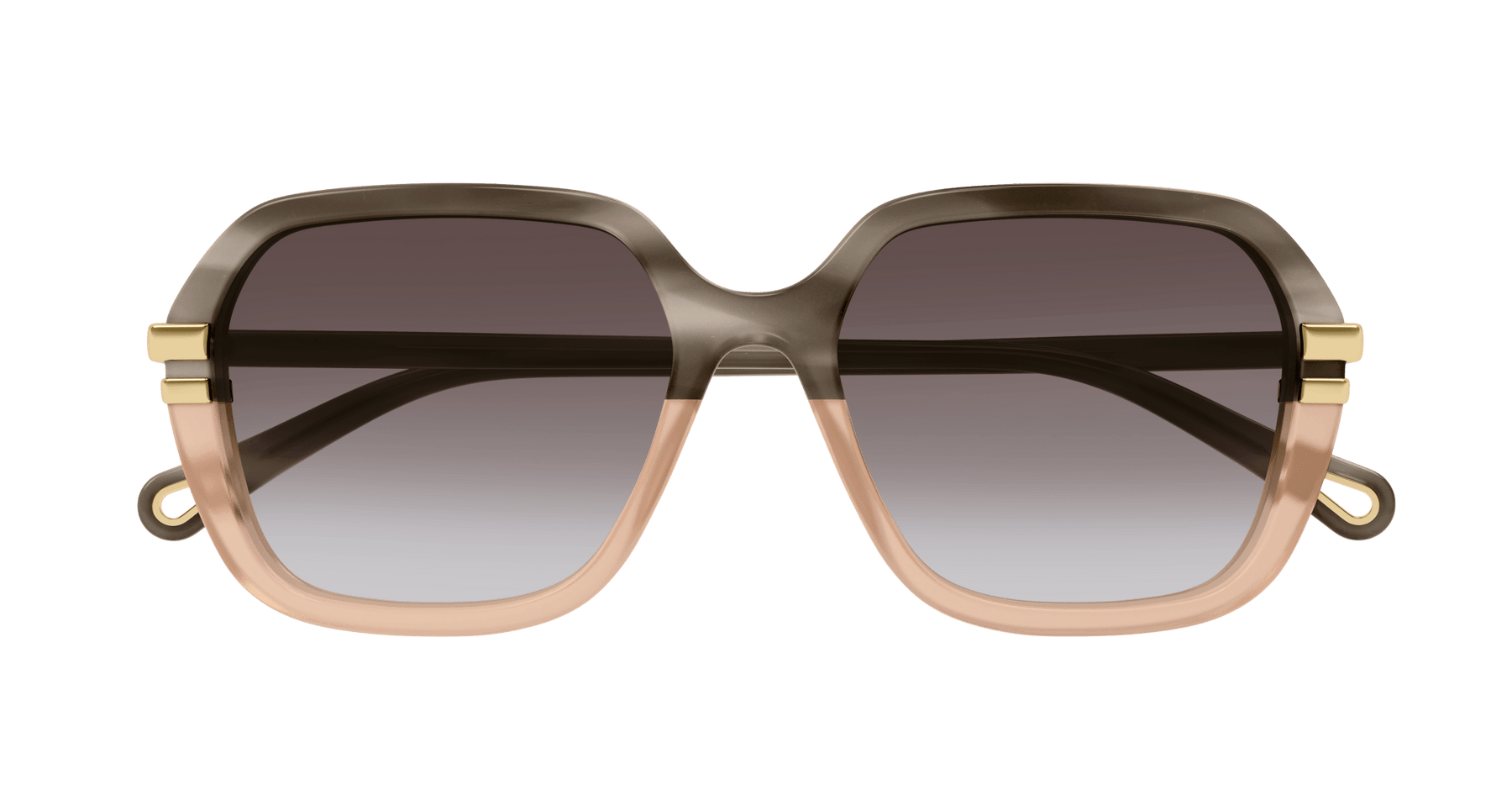Vintage rectangular sun shape in thin Acetate ReNew construction. Concept inspired by Havana shades and color-block. Gold rounded metal interts on the front.