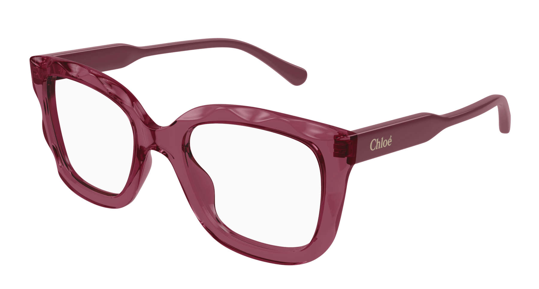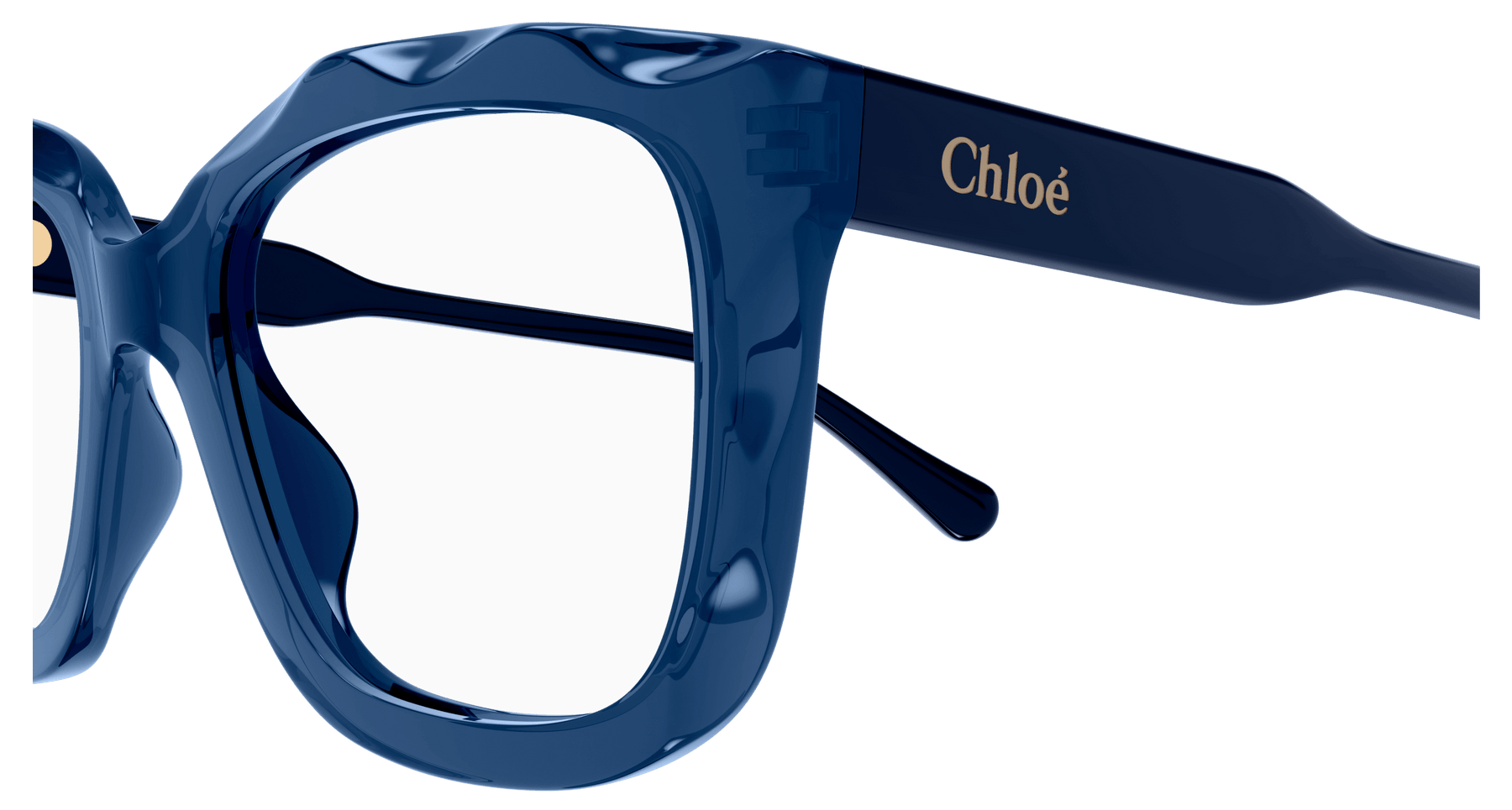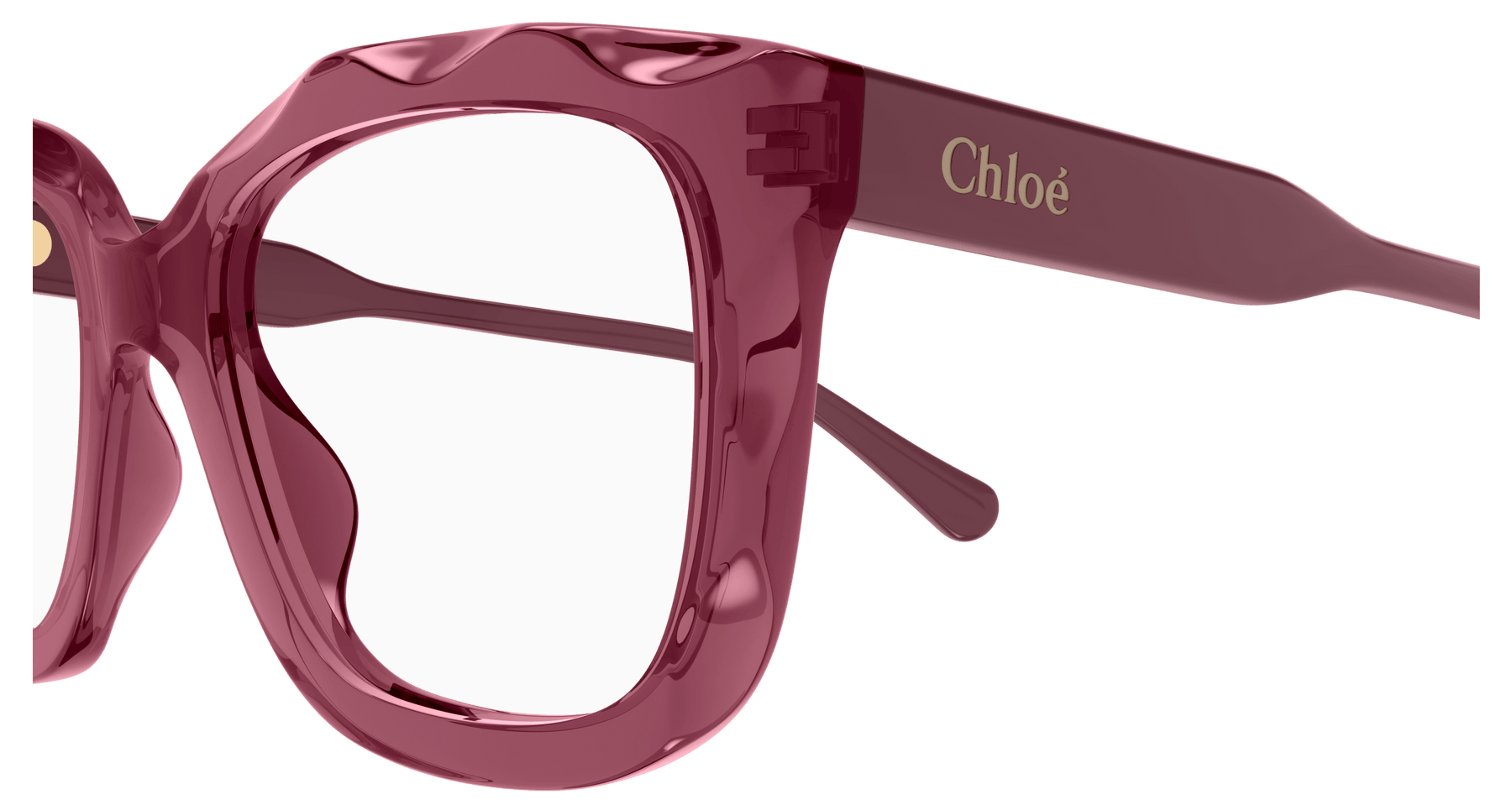 Soft rectangle acetate frame with scallop pattern mild on front. Combination of transparent color on front with tone on tone solid color temples. Chloé logo laser engraved with enamel on both temples.