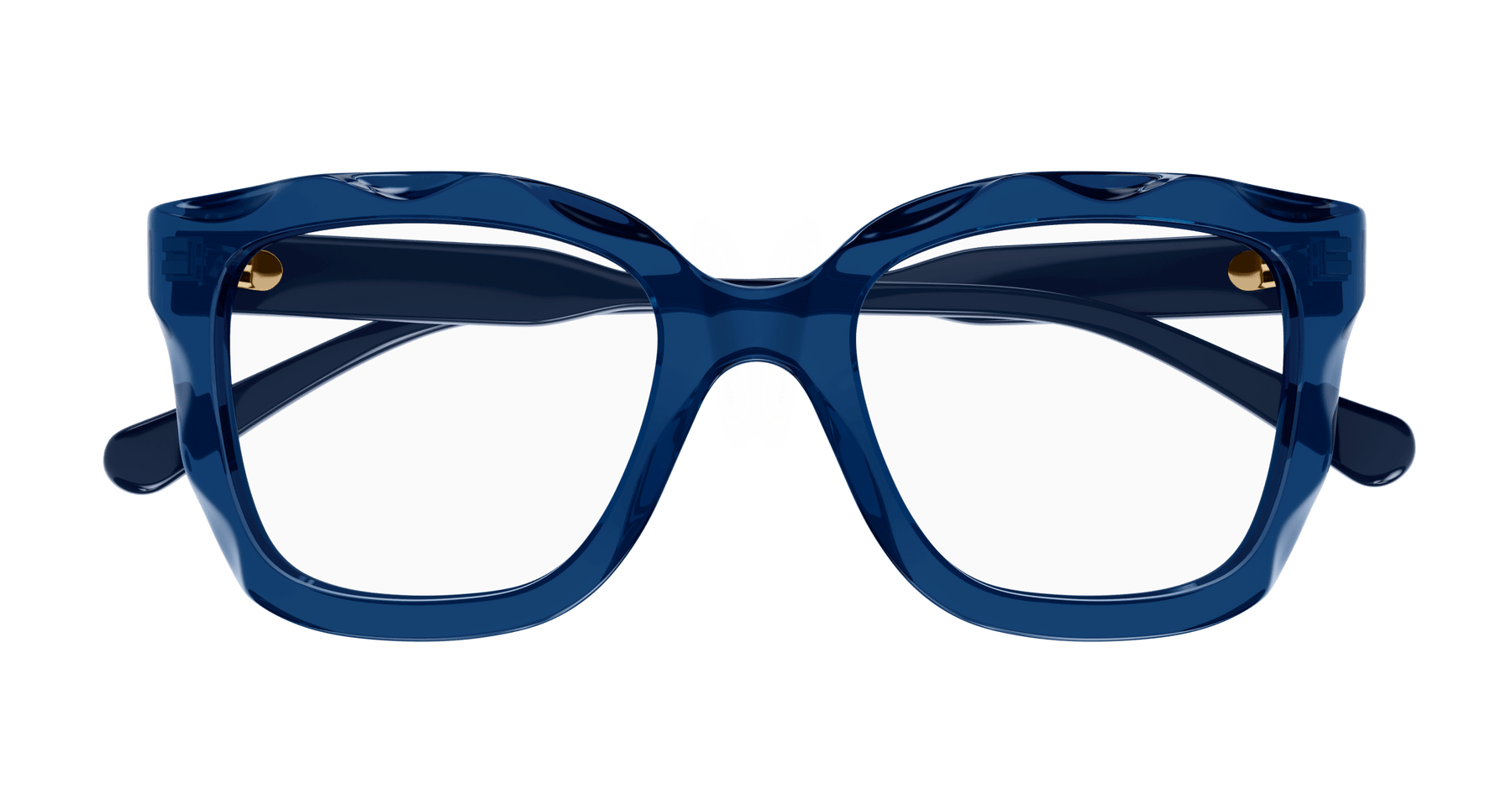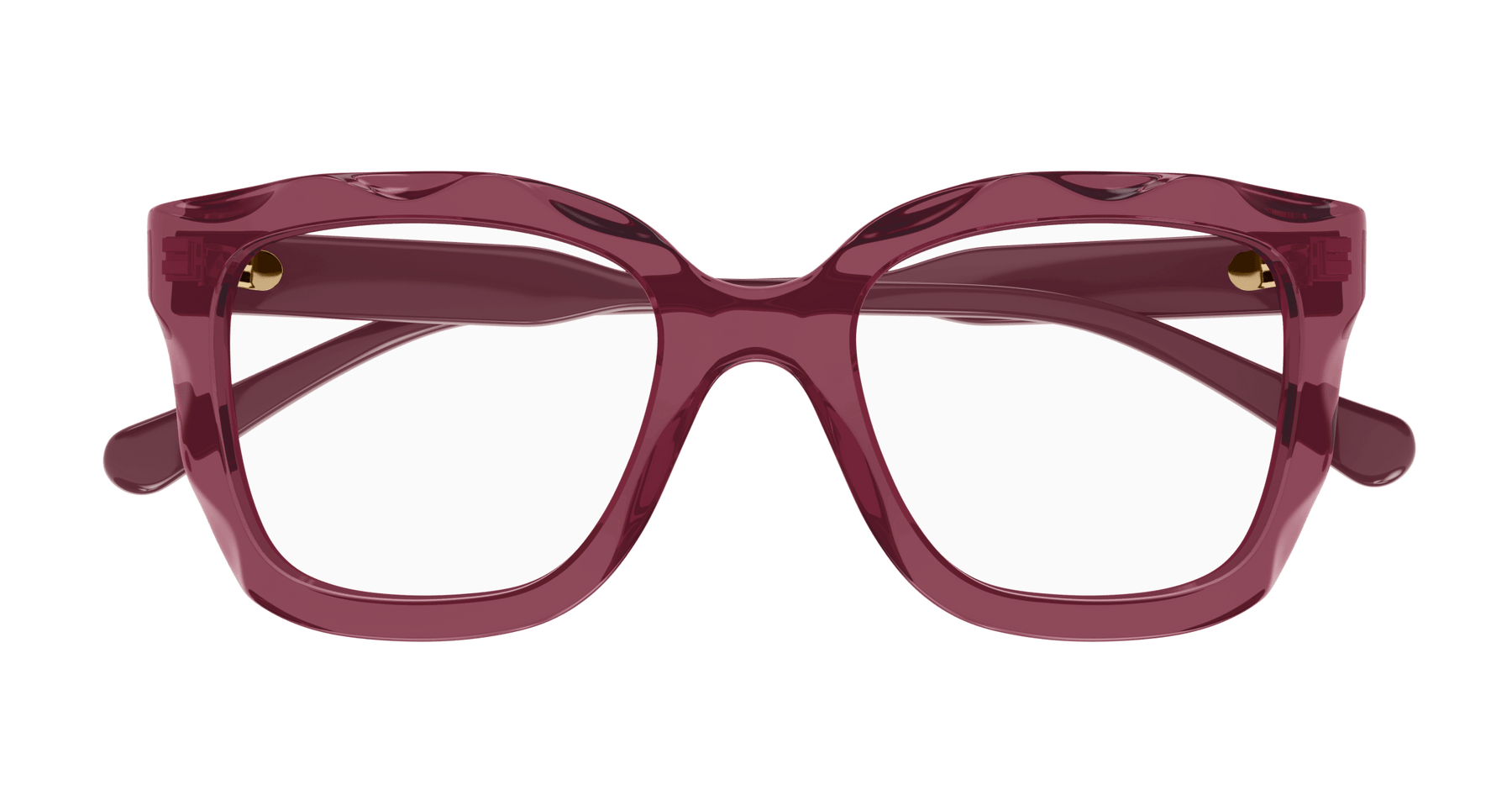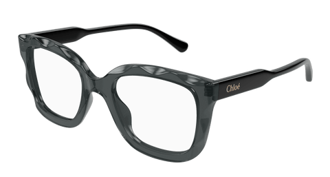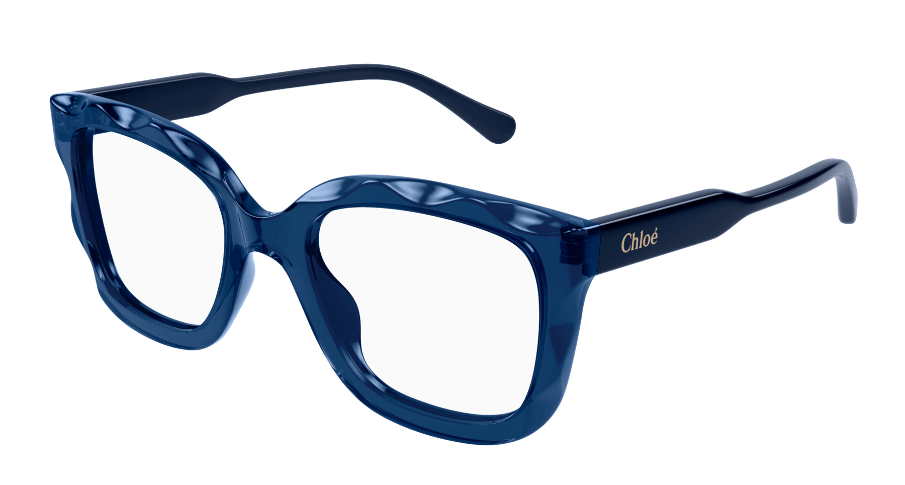 Soft rectangle acetate frame with scallop pattern mild on front. Combination of transparent color on front with tone on tone solid color temples. Chloé logo laser engraved with enamel on both temples.