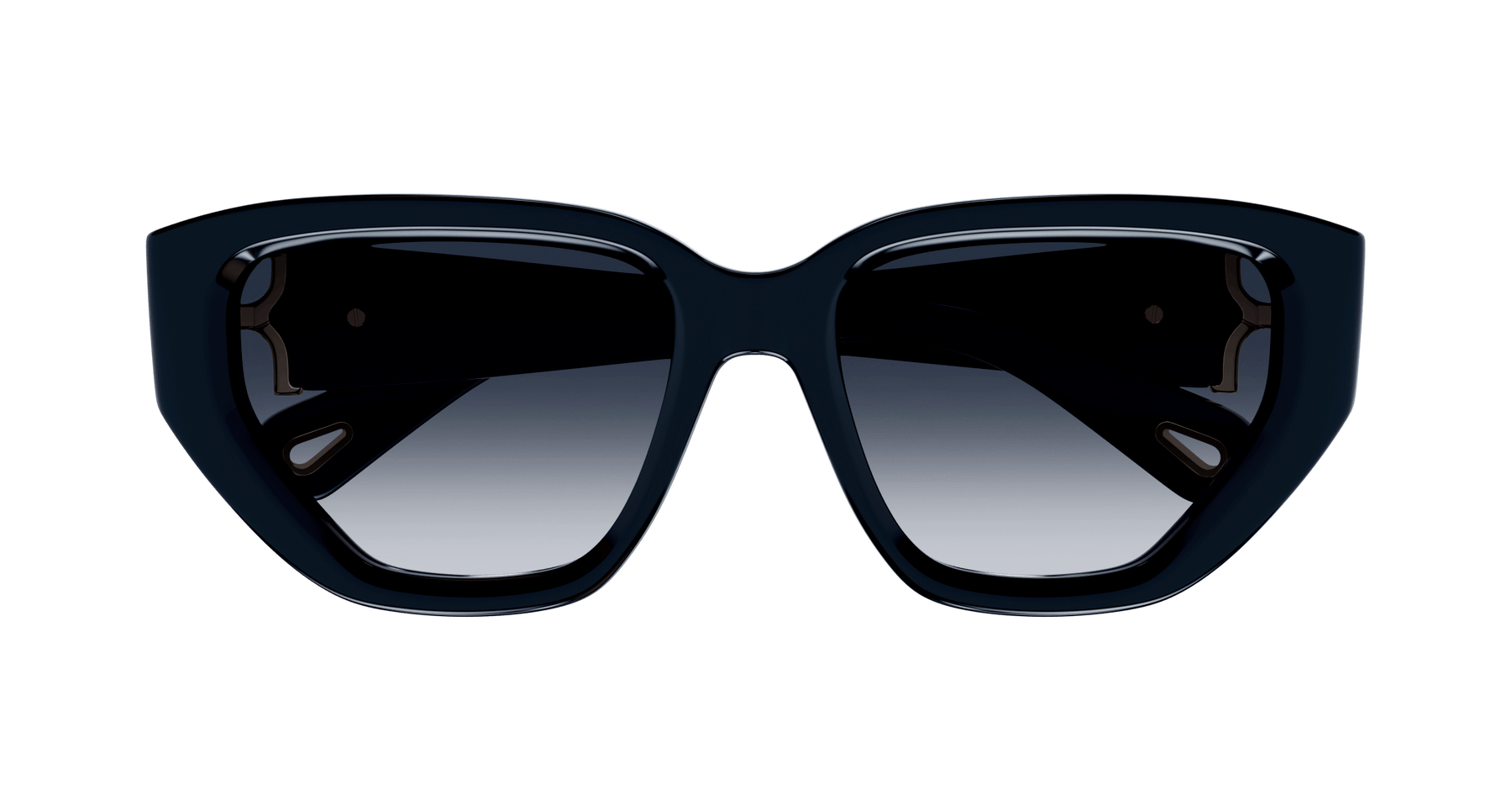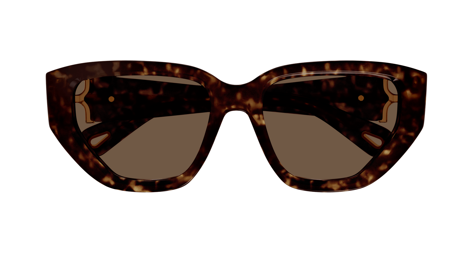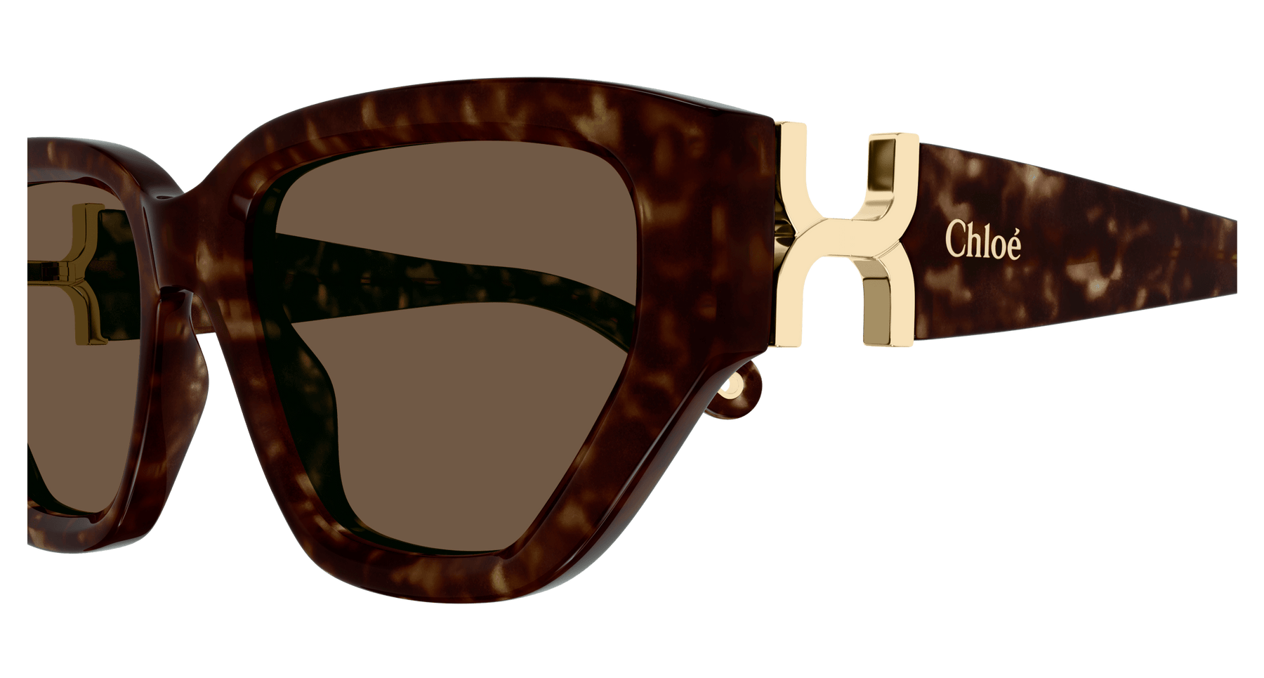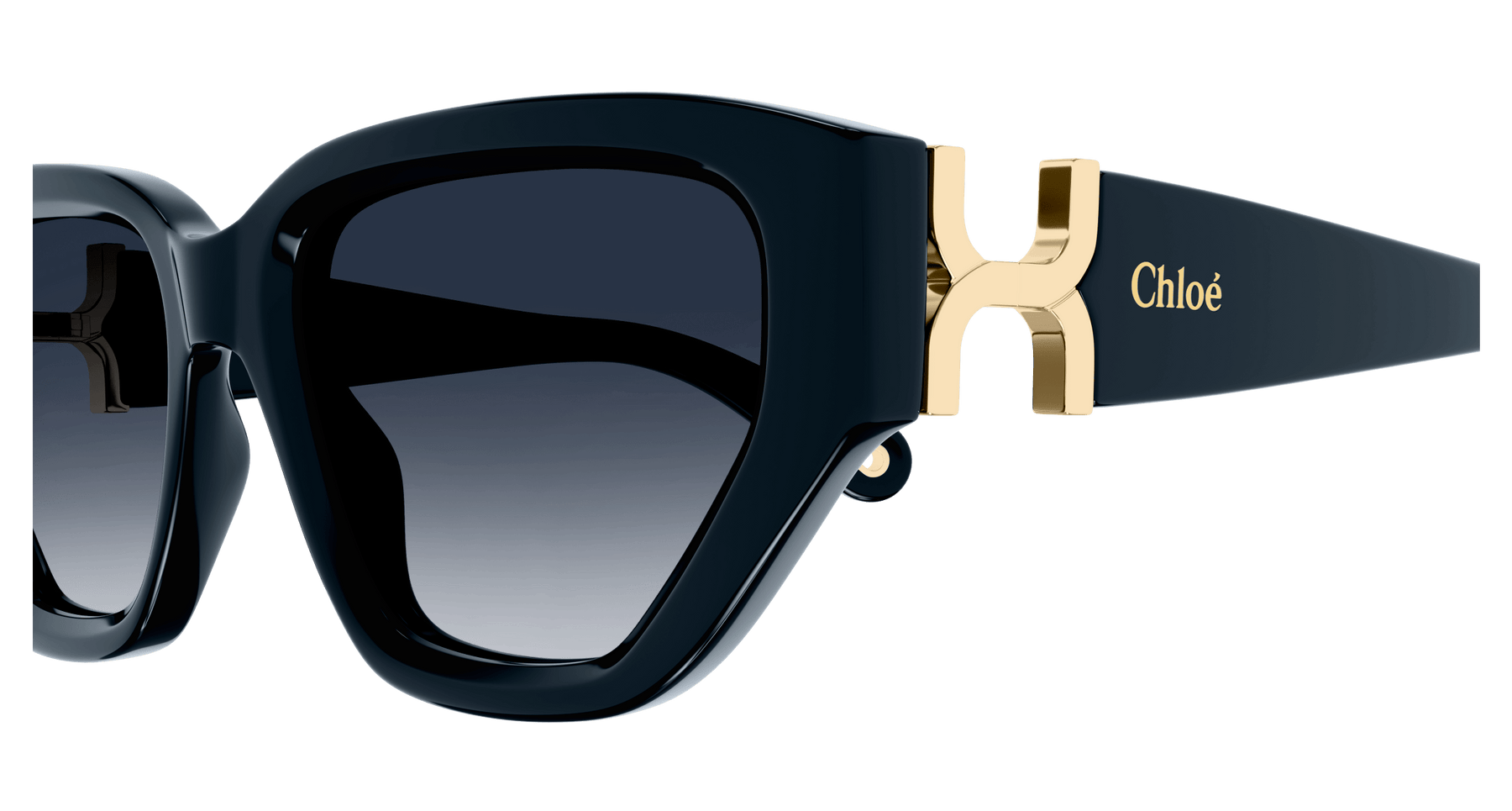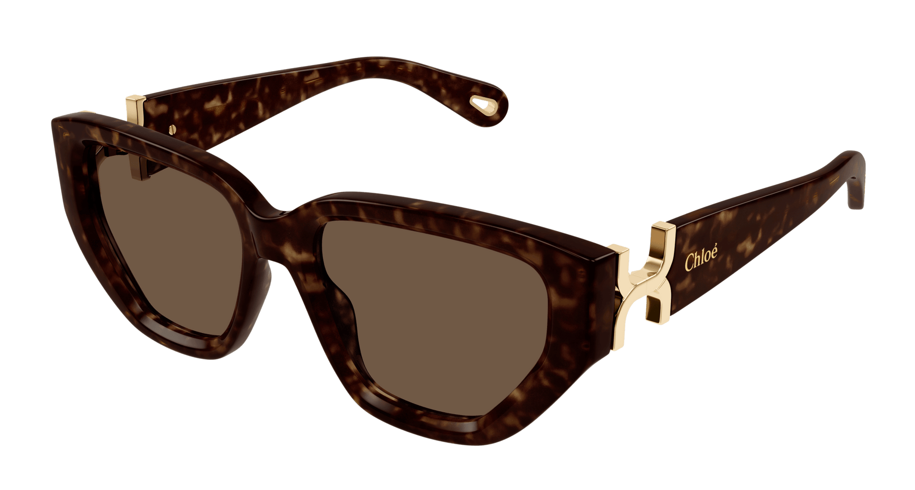 Cat Eye shape frame in acetate. Marcie gold metal logo as a functional hinge. Solid colors inspired from Chloé SS24 RTW collection.