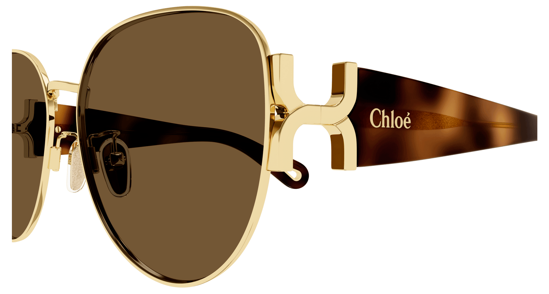 A soft cat-eye combi shape featuring the iconic Marcie signature. Metal front and acetate temples combined together by the Marcie hinge. The temple tip features the iconic Chloé Eyewear metal teardrop detail.