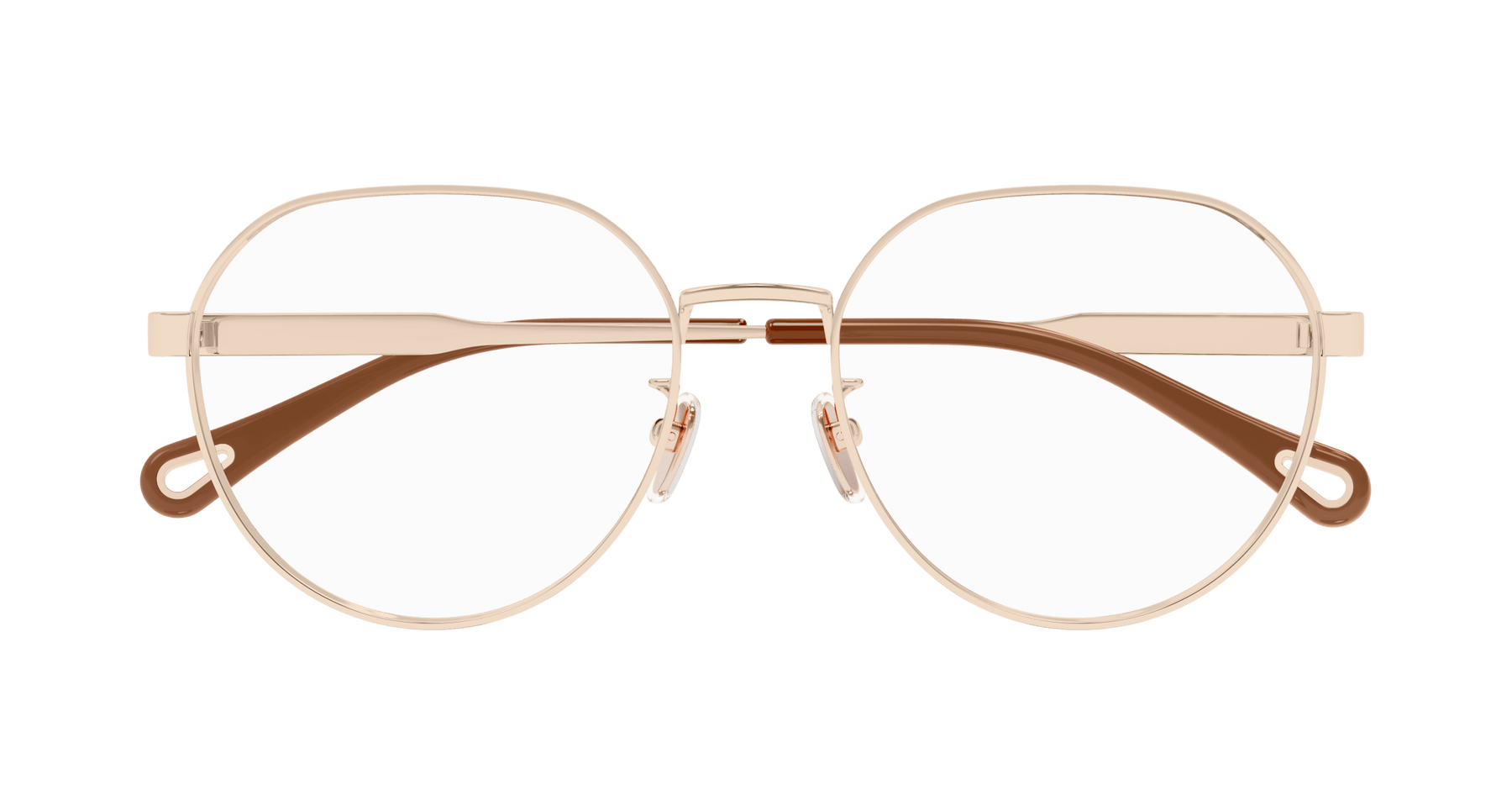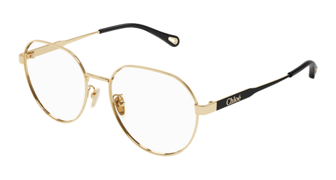 An easy to wear rounded shape with metal front and acetate temples featuring the Chloé metal logo. The temple tip features the iconic Chloé Eyewear metal teardrop detail.