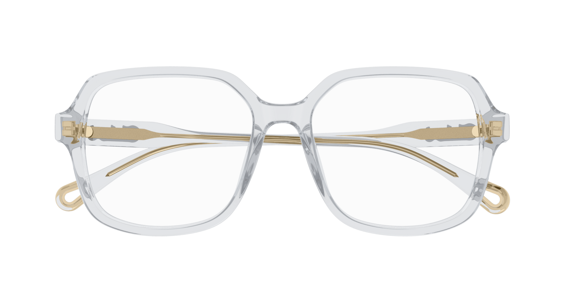 An easy to wear squared shape in thin acetate featuring the Chloé metal logo. The temple tip features the iconic Chloé Eyewear metal teardrop detail.