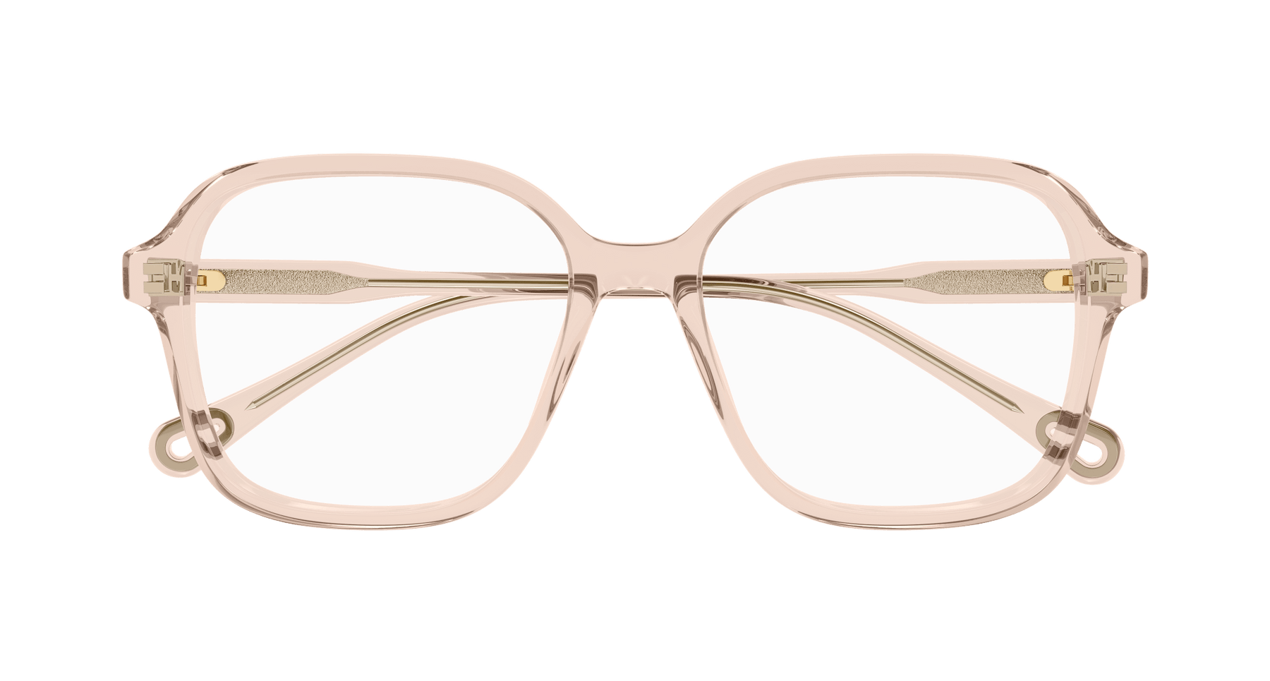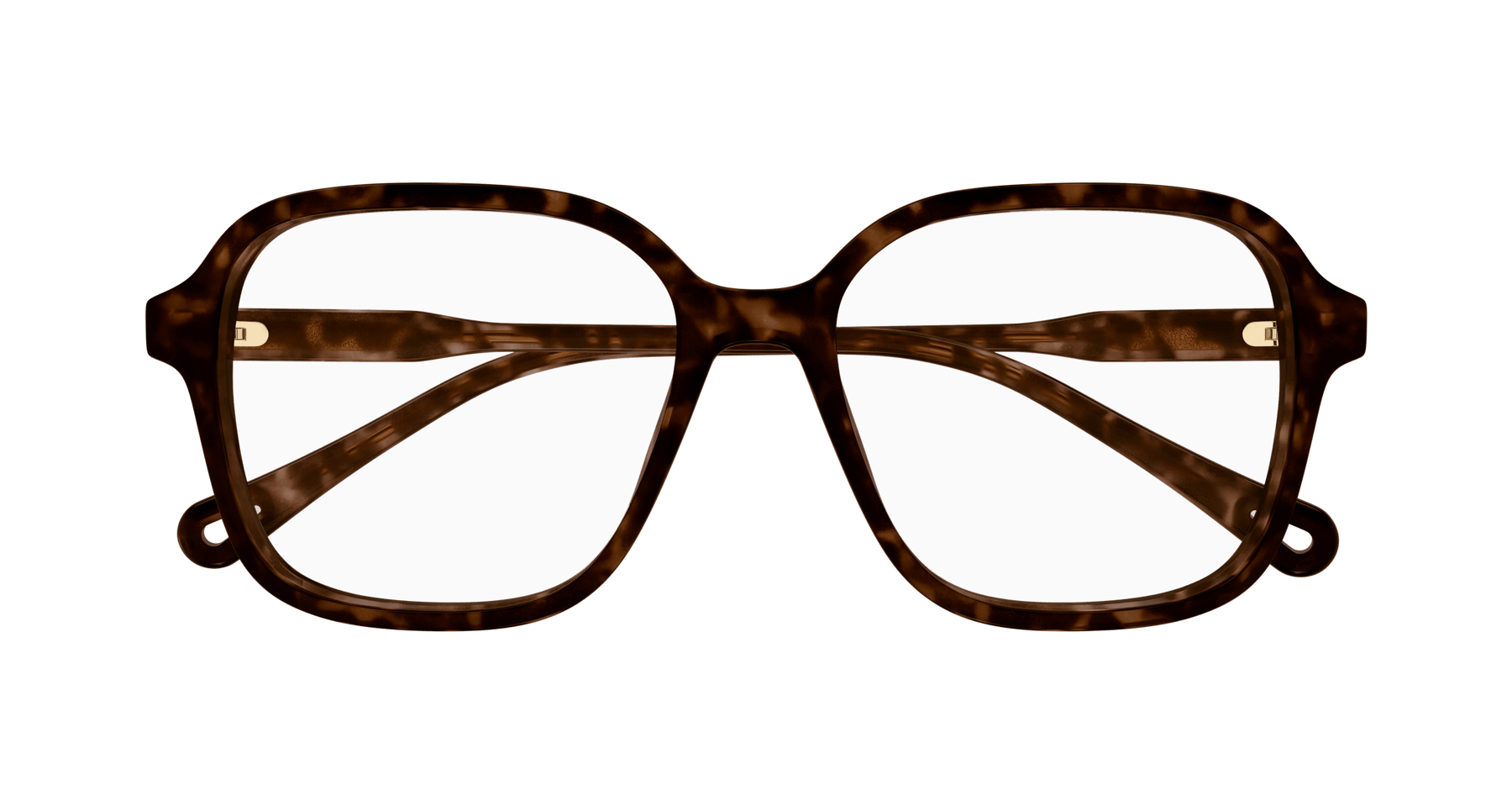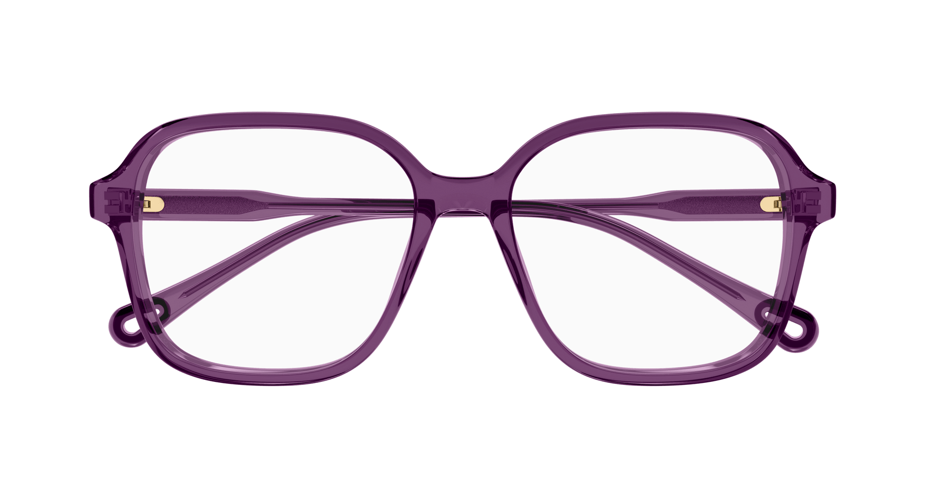 Squared shape in acetate featuring thin thicknesses. Chloé logo in gold enamel on the left temple and metal sticker detail on the temple tip.