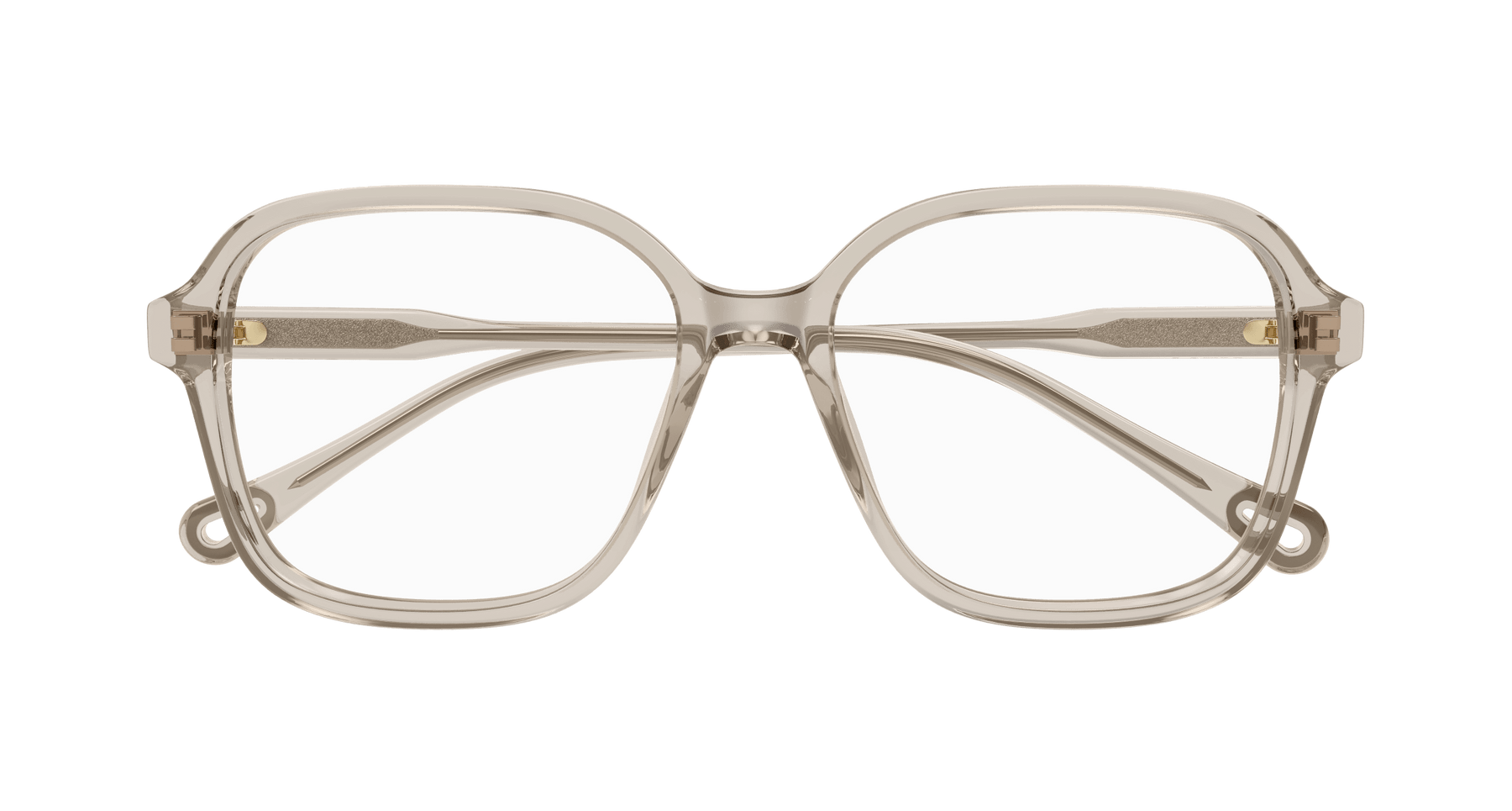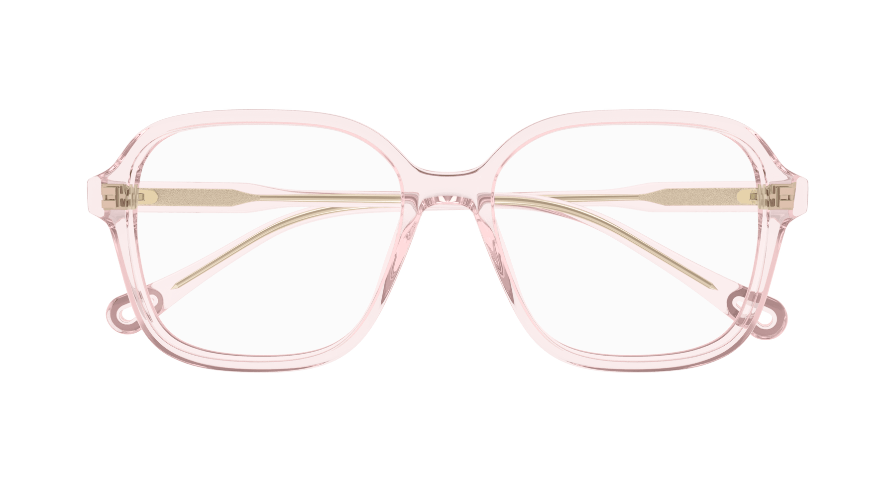 Squared shape in acetate featuring thin thicknesses. Chloé logo in gold enamel on the left temple and metal sticker detail on the temple tip.