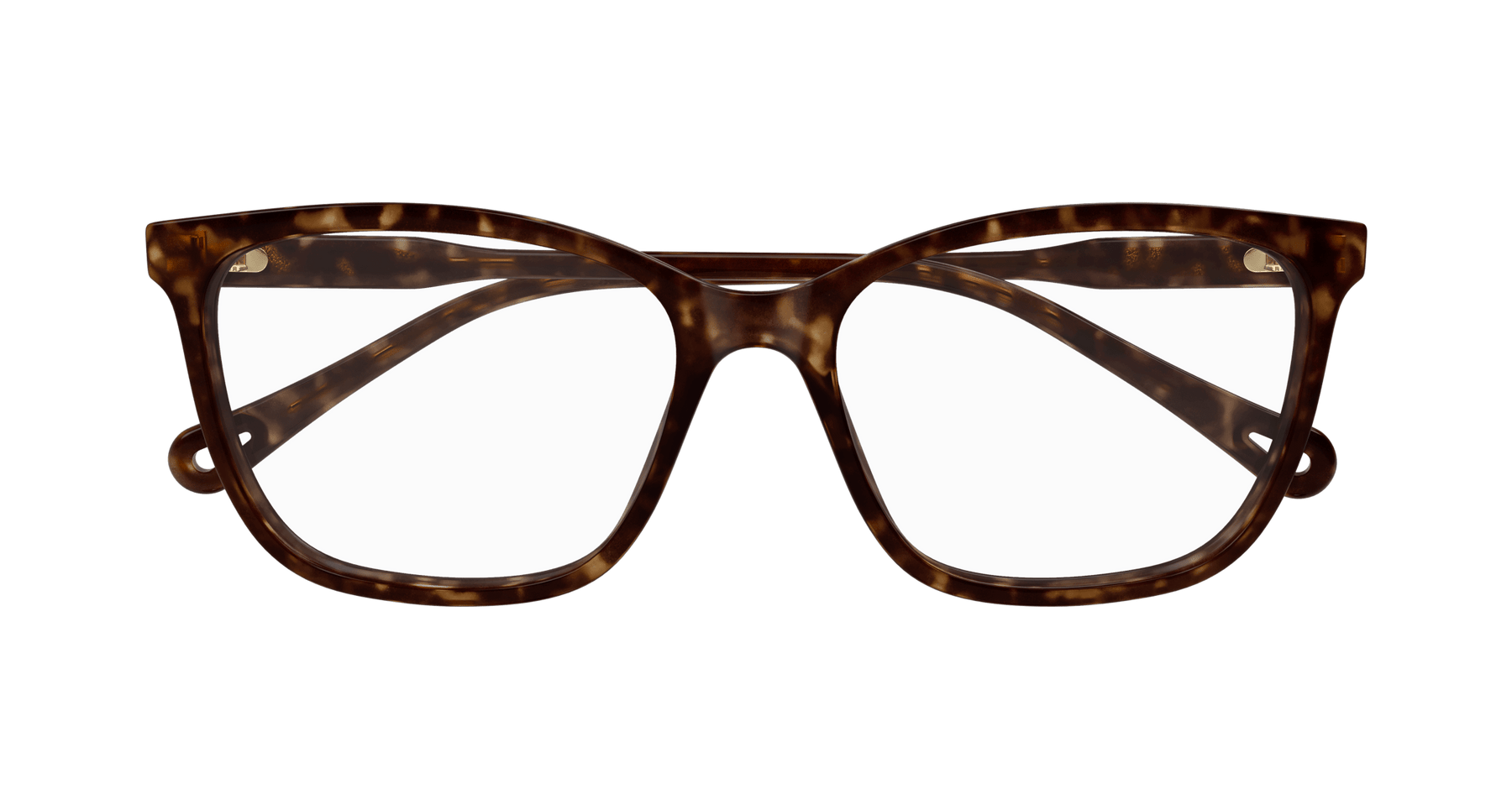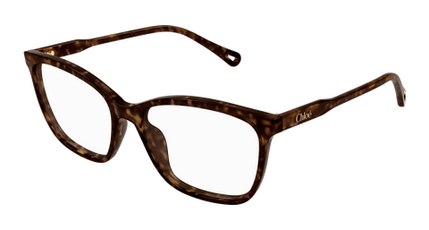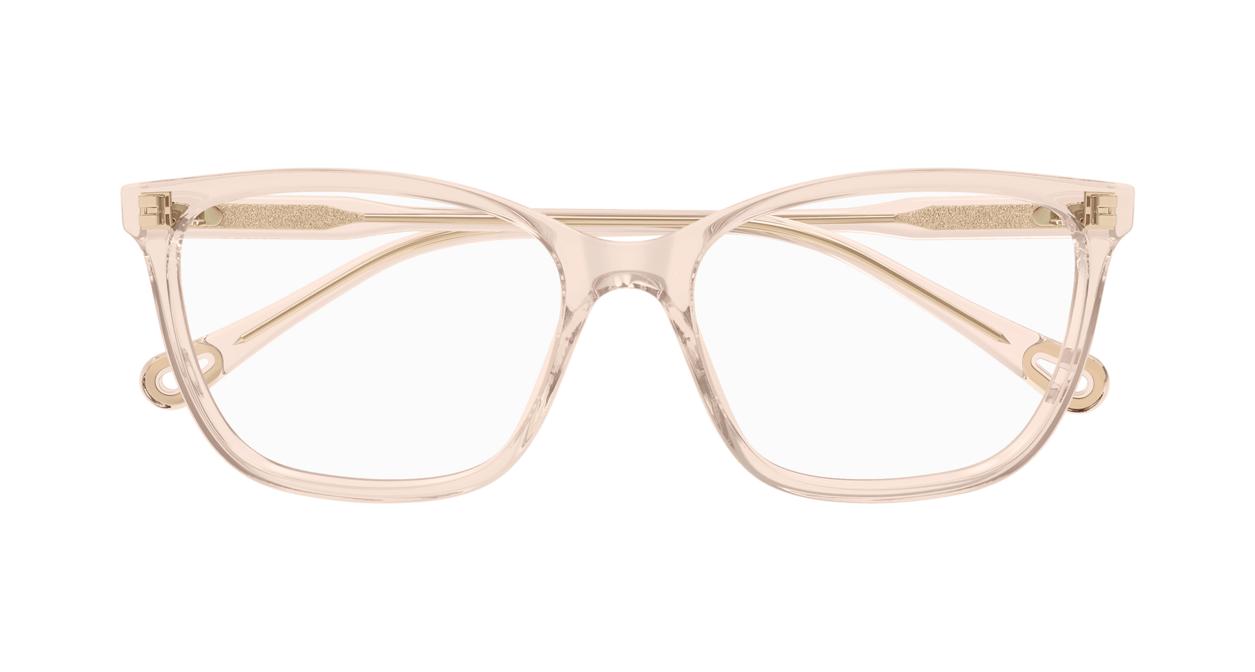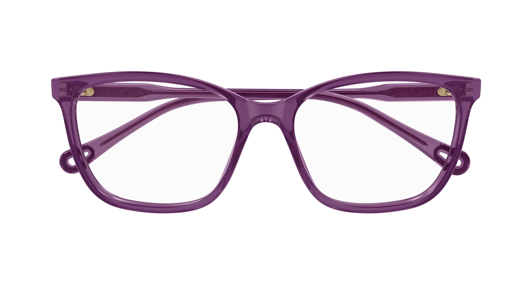 Rectangular shape in acetate featuring thin thicknesses. Chloé logo in gold enamel on the left temple and metal sticker detail on the temple tip.
